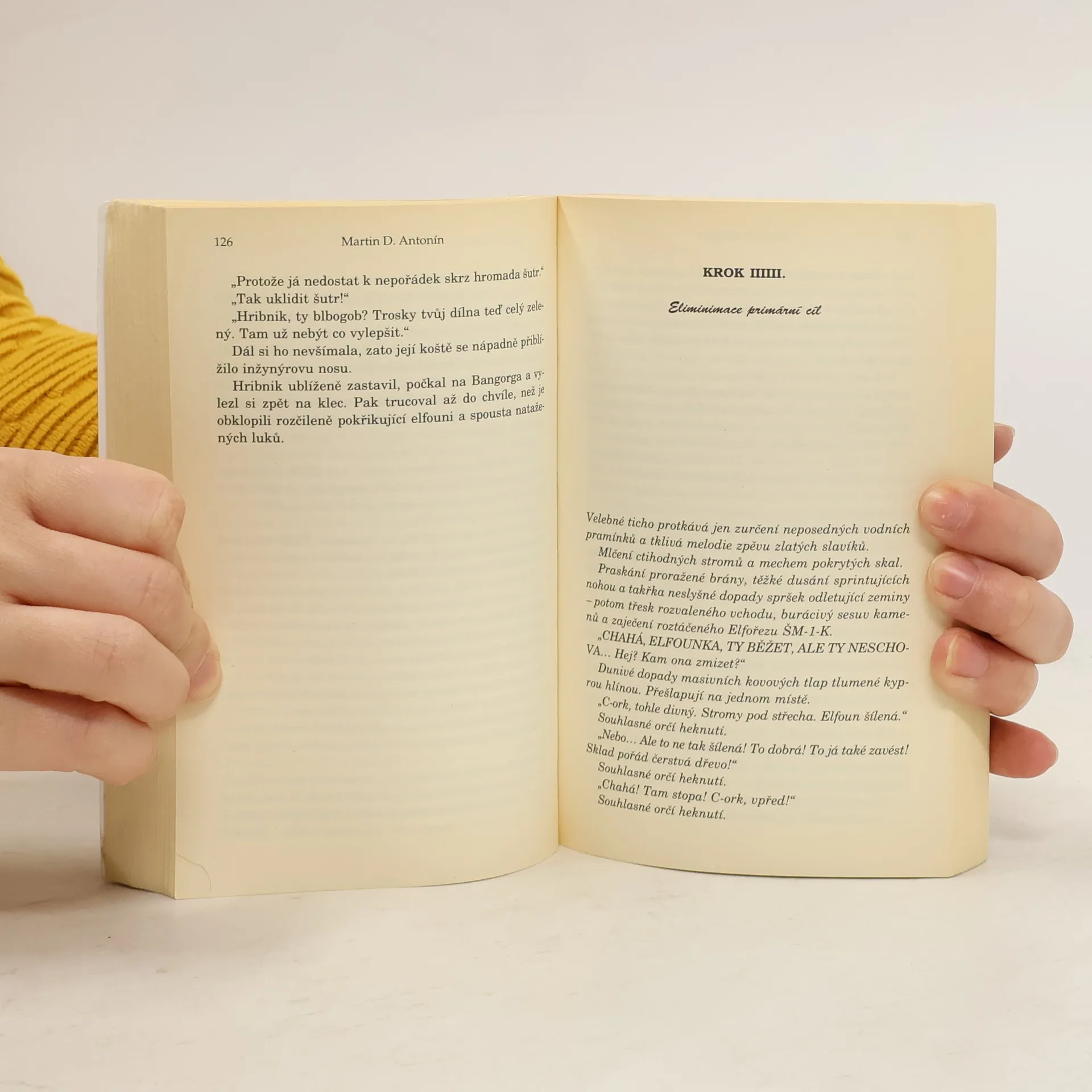Tragická sonda do hledání identity elfského národa — Brelathis Moudrovous, elfí mudrc. Já přečíst. Antonín přežít. — Grangurg Kecokyj, orčí bojovník. Inu, o nás to není. Ale to nevadí. Synek si dost užil v Křivém ostří. - Draug Bělovous, král trpaslíků. Vihlašovat důležití vihláška pro fšechna kmeni. Velkí náčelník ograhorg hledat nová šév inžinír! Nejvíc dobrá to inžinír, která udělat nejvíc dobrá bitevní stroj! Aď zvítězit to nejvíc dobrá inžiníř! Nebo to posleďní živá. Velká náčelník ograhorg.