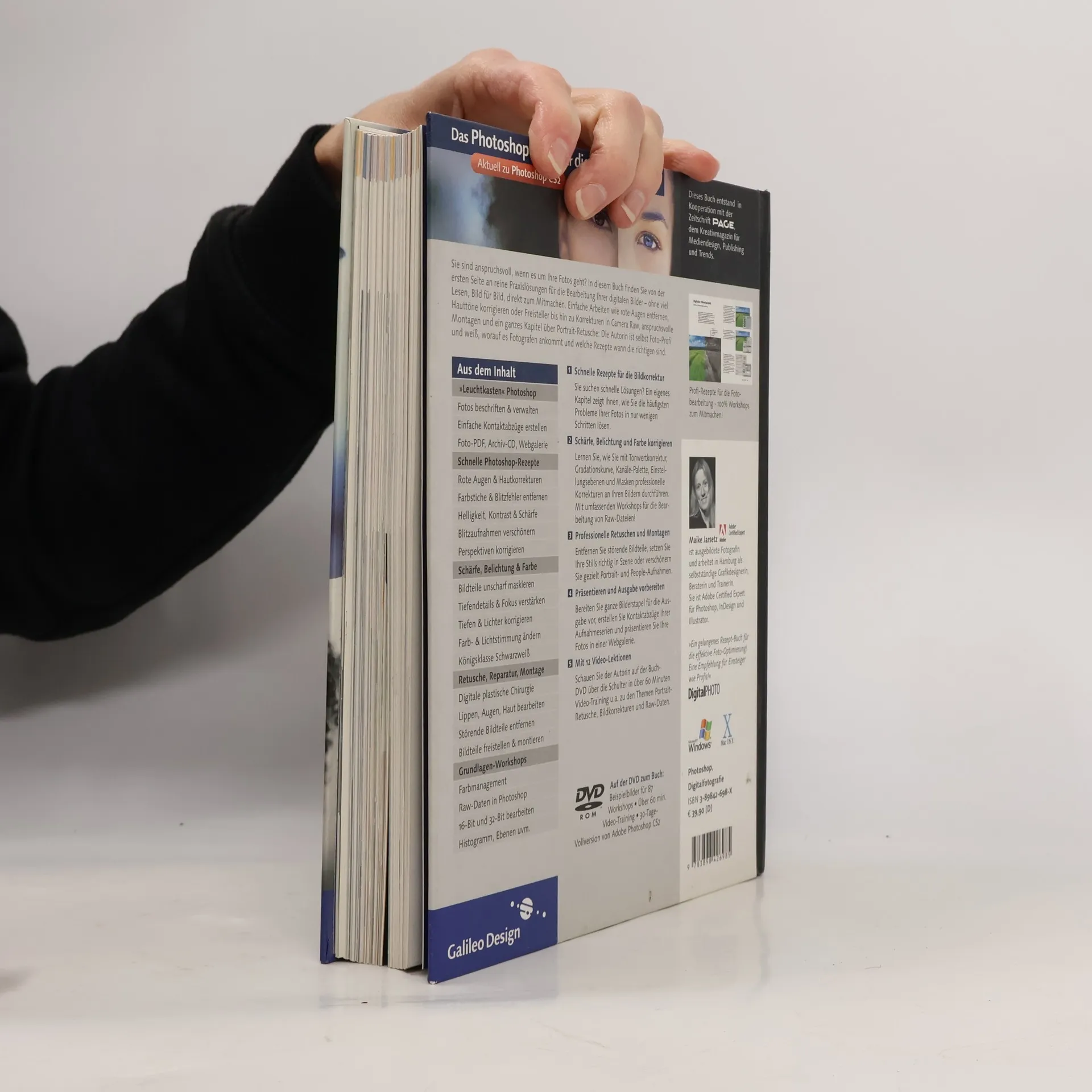 In diesem Buch bringt die Hamburger Fotografin und Grafik-Designerin Maike Jarsetz zwei Welten zusammen, in denen sie sich auskennt: die Fotografie und die Bildbearbeitung. In über 90 Workshops für Einsteiger bis Fortgeschrittene geht es ohne Umwege an die wichtigsten Optimierungen, speziell für die Problemfälle, vor denen Fotografen immer wieder stehen. Von Abzug-Vorbereitungen und Korrekturen bis zu Portrait-Retusche und komplexer Raw-Bearbeitung, jede Anleitung kann ohne Vorwissen Schritt für Schritt nachgeklickt werden. Das Photoshop-Wissen kommt beim Ausprobieren und kann in Grundlagen-Exkursen zu Farbeinstellungen, Farbtiefe, Raw und den wichtigsten Werkzeugen vertieft werden. Auf DVD gibt es die Beispielbilder zum Nachbauen, eine Demoversion von Photoshop CS2 und ein eigenes Video-Training der Autorin mit Lektionen zu Camera Raw, wichtigen Korrekturen und Bildorganisation. Aus dem Inhalt: Leuchtkasten und Bildorganisation Schnelle Rezepte zur Bildkorrektur Belichtungskorrekturen Farbkorrekturen Königsklasse Schwarzweiß Scharf- und Weichzeichnung Retusche und Reparatur Portraitretusche Freistellen und montieren Perspektive und Dynamik Automatisieren und präsentieren