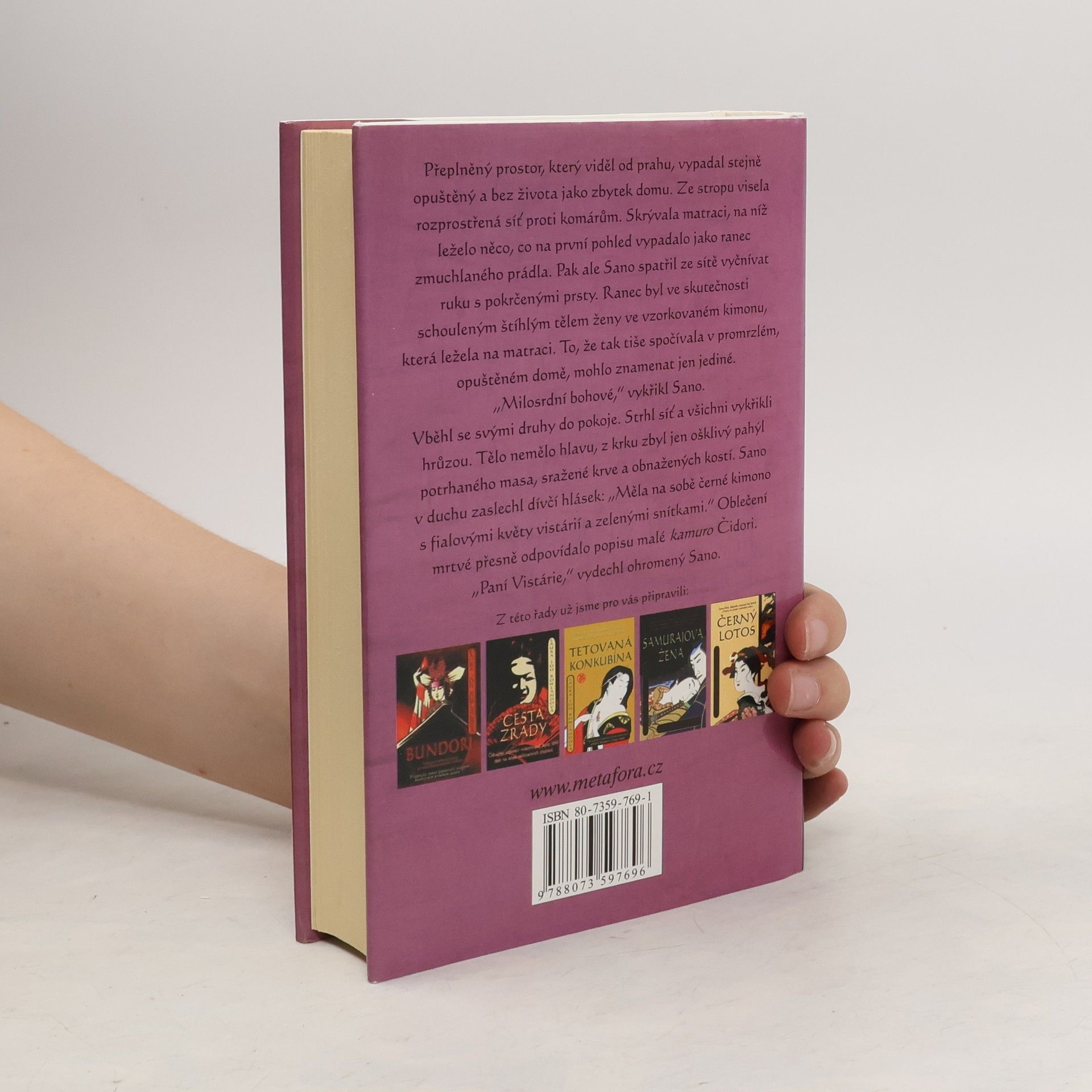 Historický detektivní román ze starého Japonska o vraždě šógunova následníka, kterou řeší samuraj a vyšetřovatel Sano Ičiró. V budoáru veřejného domu byl zavražděn bratranec a zamýšlený nástupce samotného šóguna, jeho smyslná společnice kurtizána Vistárie zmizela a s ní i její deník. Sano, který s ní měl kdysi pletky, stojí před těžkým úkolem: vypátrat vraha a zatajit svůj dávný prohřešek. Nepřátelské intriky nakonec způsobí, že je sám obviněn; v nebezpečí života musí zdvojnásobit své pátračské úsilí, při čemž mu vydatně pomáhá neohrožená choť Reiko. Tentokrát nás autorka vpouští do zábavní čtvrti Jošiwara, sídla svůdných doupat neřesti. Tradičně napínavý, již sedmý příběh ctihodného Sana Ičiró opět vyvolává fascinující atmosféru japonského šógunátu v 17. století