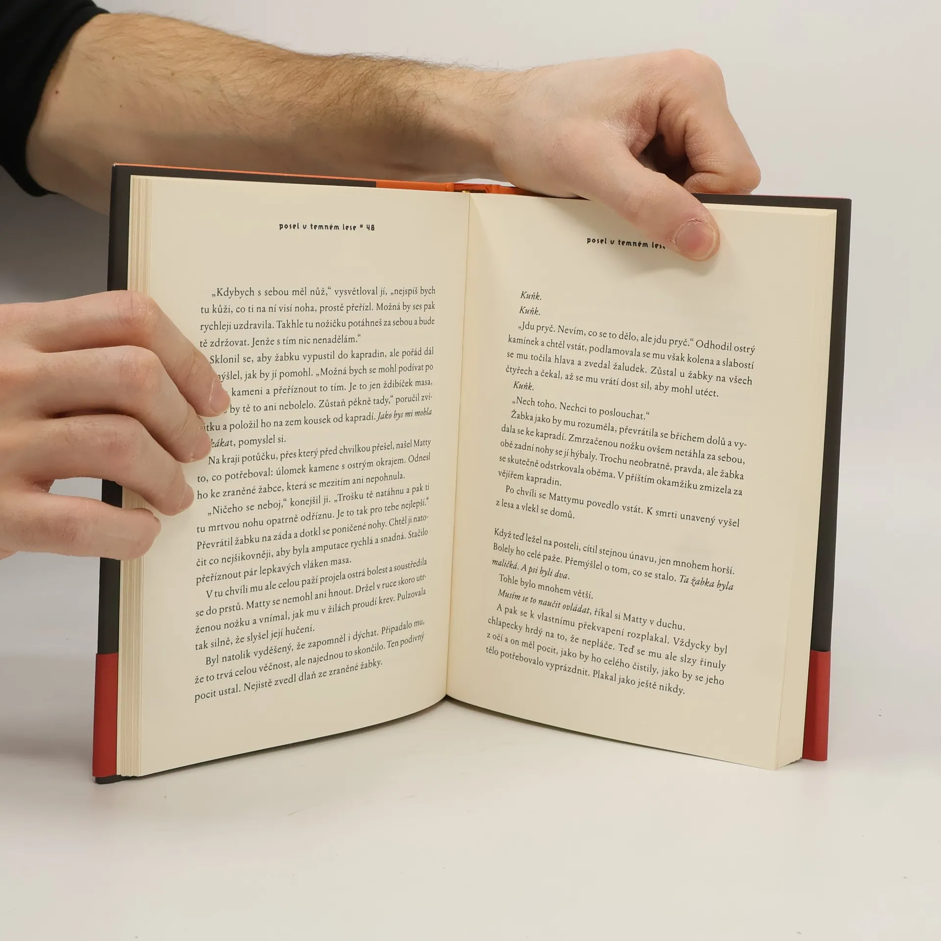 Představte si, že žijete ve světě, kde si lidé pomáhají, jsou ke všem soucitní a laskaví. A pak se to zvolna a nenápadně začne měnit. Zdá se, že zlobu, bezcitnost a lakotu sousedů mají na svědomí divné obchody, takzvané handly. Nehandluje se ale o věci, nýbrž o něco, co není vidět… Uplynulo šest let od doby, kdy malý rošťák Matty dorazil do Vesnice uzdravení. Pod laskavým dohledem Jasnovidce dospěl v spolehlivého mladíka, který pro vesnickou komunitu obstarává kontakt s okolním světem. Jen on totiž dokáže ve zdraví projít záludným lesem, který obklopuje vesnici. Doufá, že díky této jedinečné schopnosti si vyslouží označení všemi ctěného Posla. Jenže do vesnice, ve které dosud nacházeli útočiště lidé vyhnaní pro tělesné postižení či pokročilý věk ze sousedních osad, začíná prosakovat zlověstná síla – mezi obyvateli se šíří nesváry, laskavost a soucit se vytrácejí. Vesničané se rozhodnou nepřijímat další příchozí. Pro Mattyho tak začíná závod s časem. Musí projít lesem a přivést Jasnovidcovu dceru Kiru dřív, než se vesnice zcela uzavře. Les se však mezitím změnil a klade mu jednu nástrahu za druhou… Ve třetím dílu tetralogie se čtenáři znovu setkají nejen s Mattym, Jasnovidcem a Kirou z Hledání modré, ale také s Jonasem z Dárce.