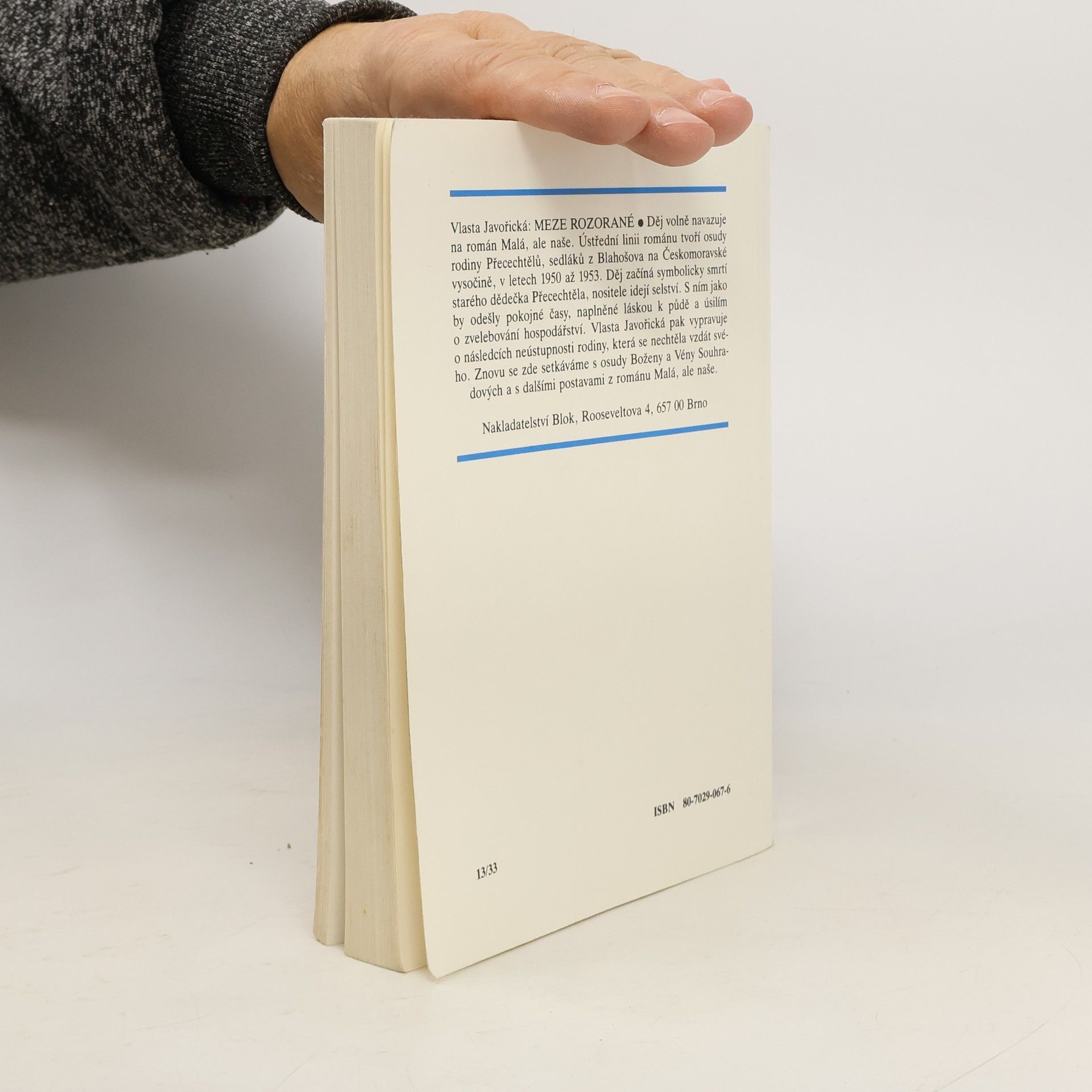 Dramata mladých lidí s rodinnými a milostnými konflikty, na pozadí dodnes citlivých otázek česko-německých vztahů, tvoří osu napínavého vyprávění z konce třicátých let minulého století. Rozsáhlému obrazu lásky, vlastenectví i zrady nechybí lyrický náboj. Na tento román volně navazuje kniha "Meze rozorané" od stejné autorky.