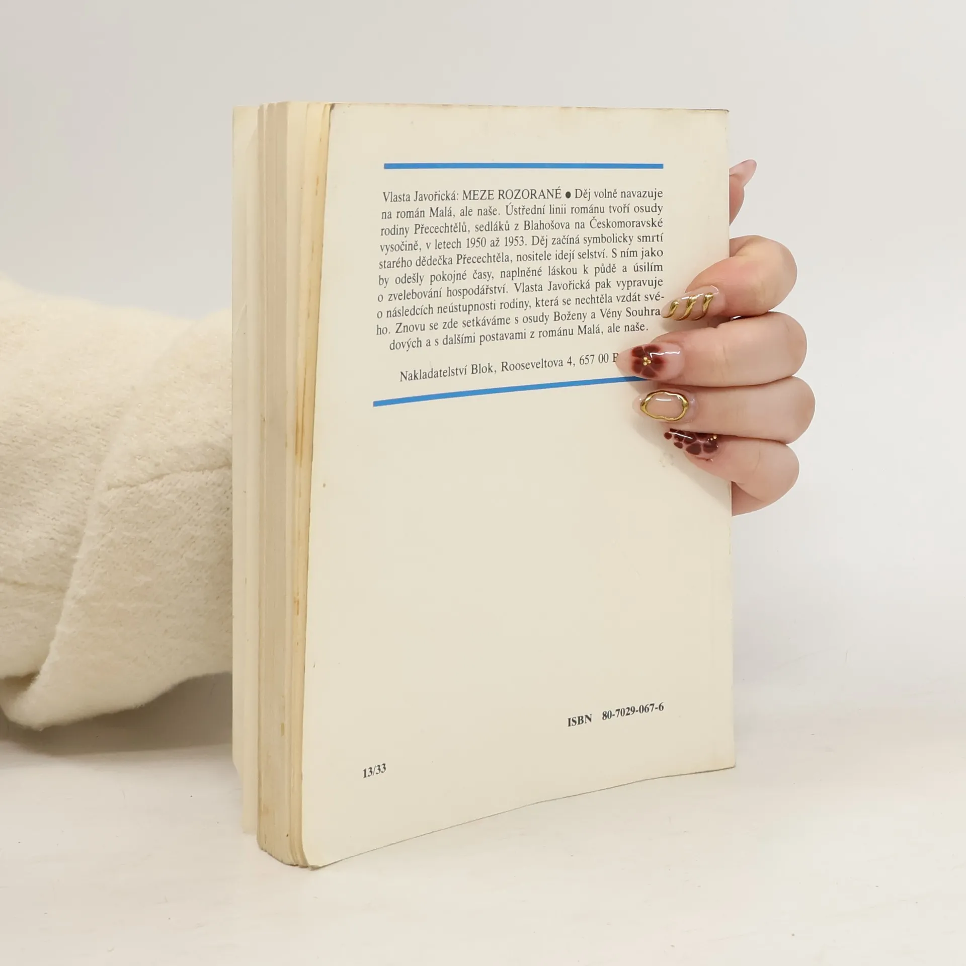 Dramata mladých lidí s rodinnými a milostnými konflikty, na pozadí dodnes citlivých otázek česko-německých vztahů, tvoří osu napínavého vyprávění z konce třicátých let minulého století. Rozsáhlému obrazu lásky, vlastenectví i zrady nechybí lyrický náboj. Na tento román volně navazuje kniha "Meze rozorané" od stejné autorky.