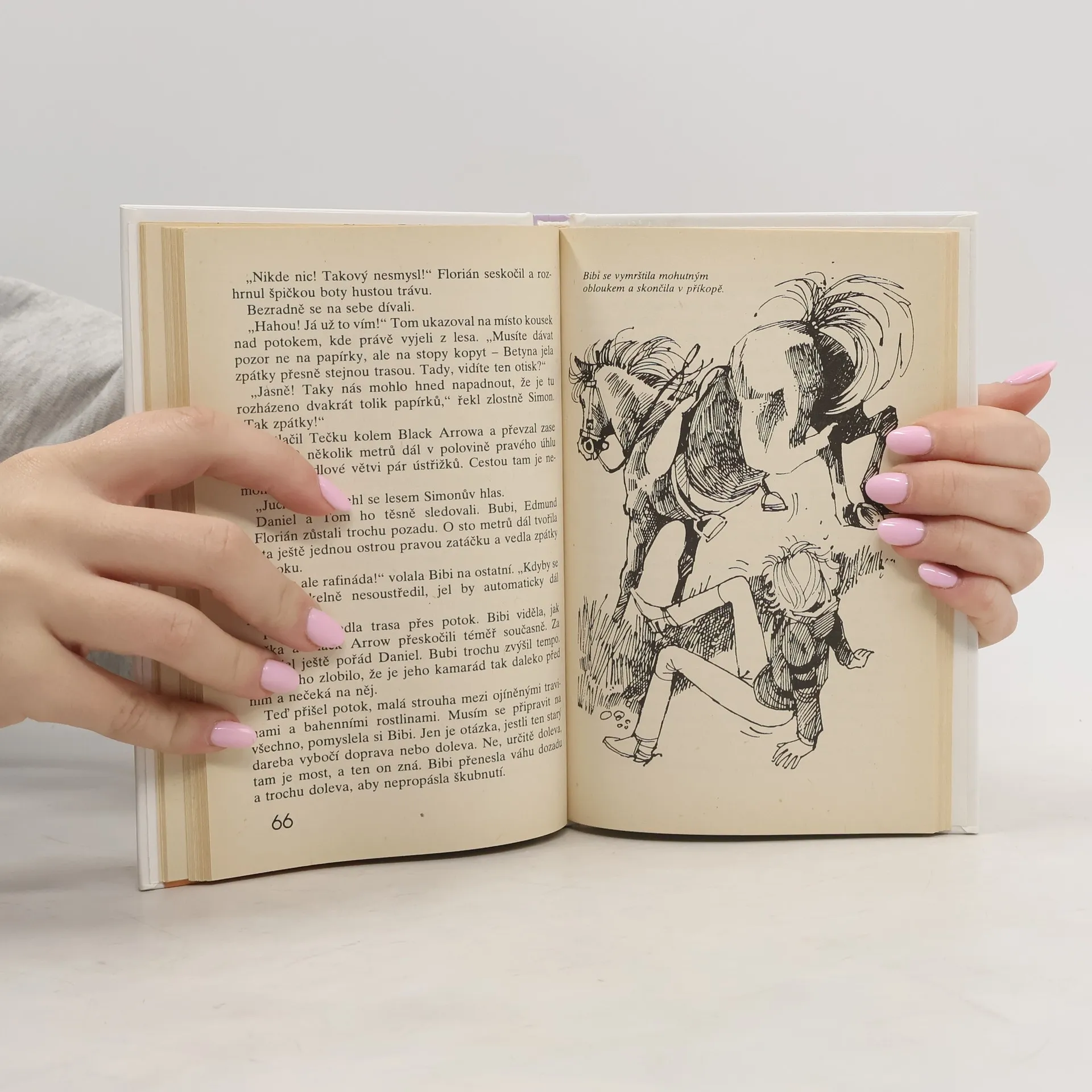 "Profesor se obrátil, jako by ho zasáhl blesk. Bibin poník Bubi tu stojí zahalený do bílého závoje, pronikavě řehtá, a tluče zuřivě kopyty..." Bibi se opět svým kamarádem Bubim dostává do mnoha komických situací a prožívá s veselým poníkem nejedno napínavé dobrodružství.
