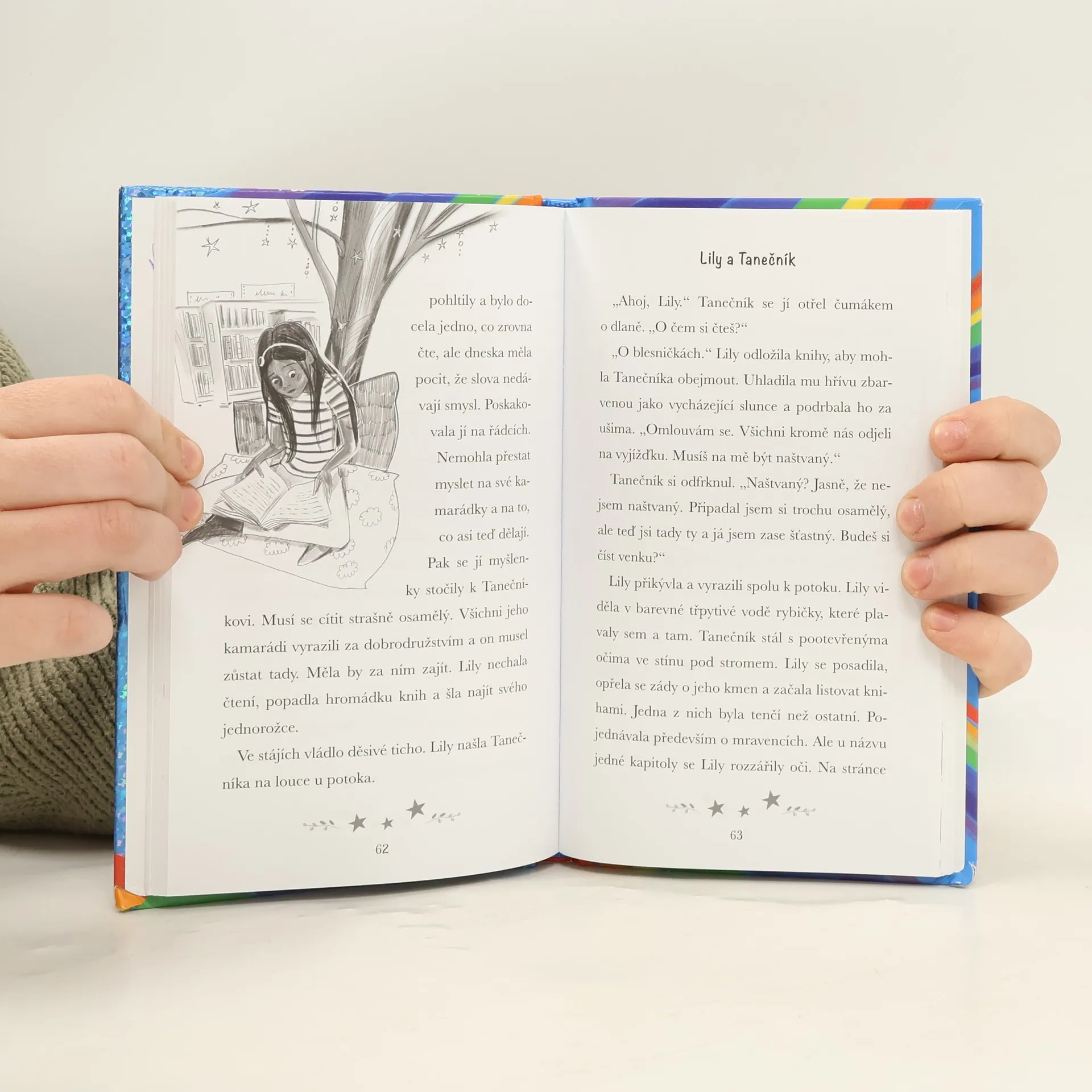 Lily je na Akademii jednorožců tak šťastná! Miluje svého laskavého a starostlivého jednorožce Tanečníka. Jen by si přála, aby se tolik nebála, když mu sedí na hřbetě a on s ní uhání a skáče stejně rychle jako jejich přátelé. Když ale stromy kolem Třpytivého jezera náhle začnou umírat, Lily musí překovat své obavy a vydat se na napínavé dobrodružství, aby našla lék! Kniha je určena dětem od 7 let.