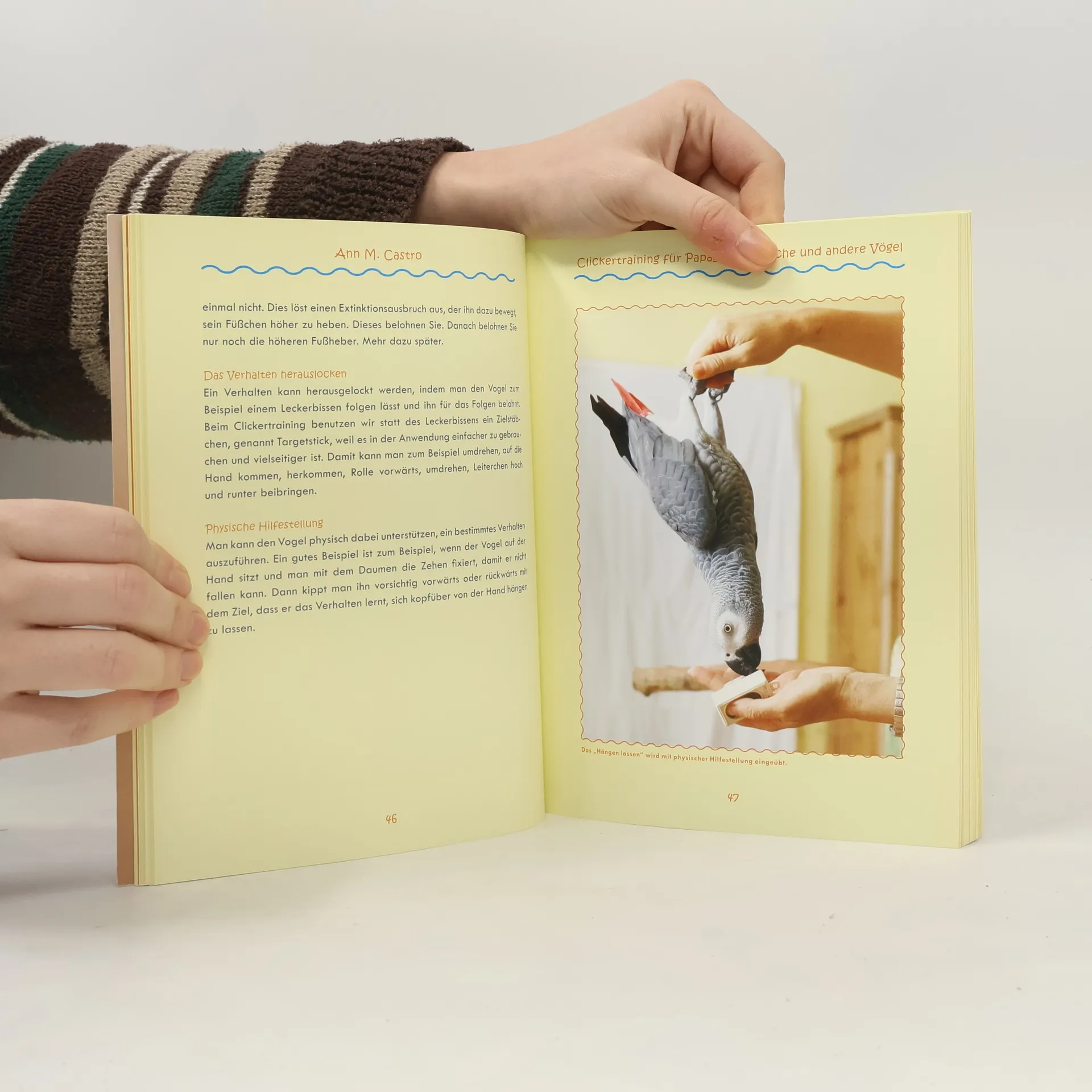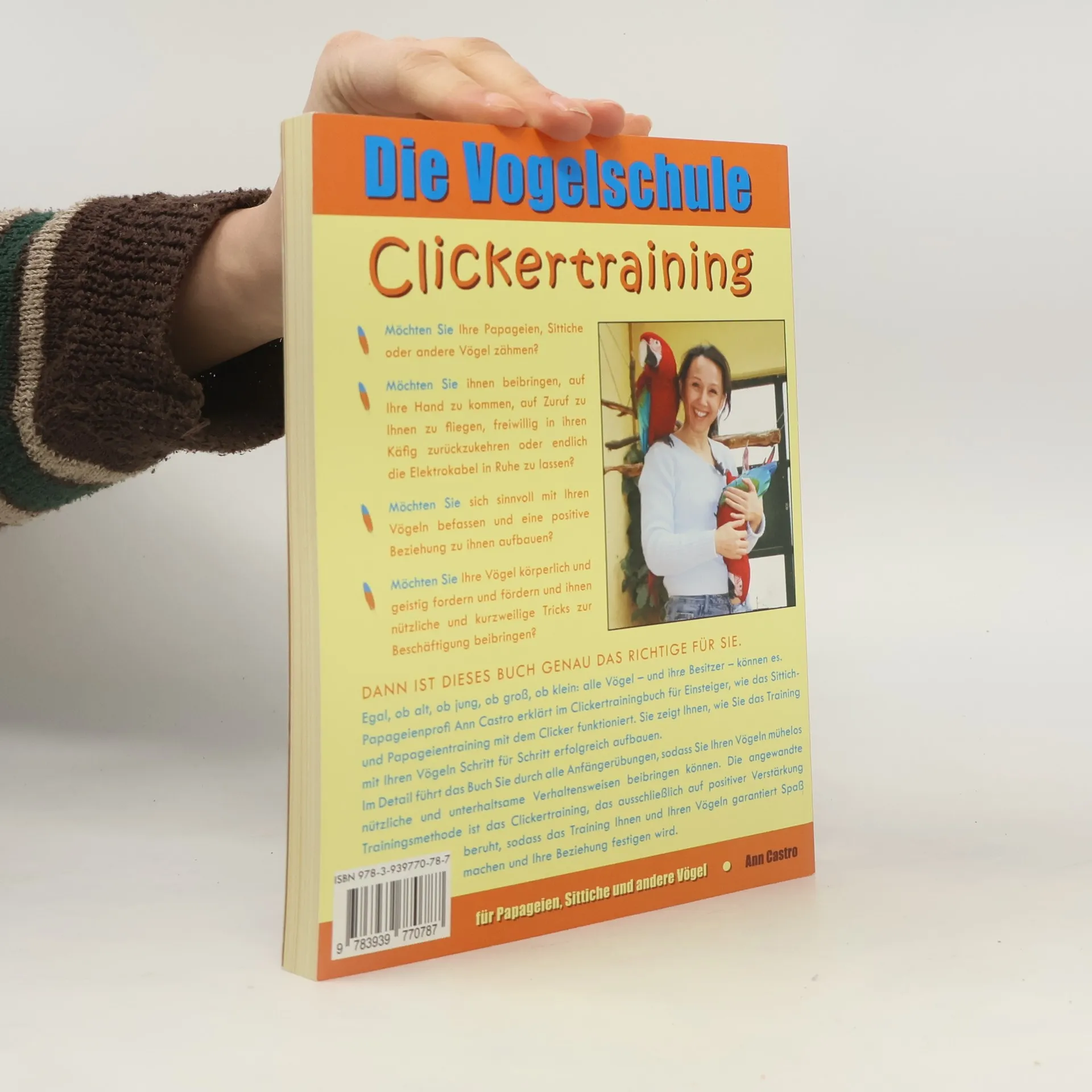 Möchten Sie Ihre Papageien, Sittiche oder andere Vögel zähmen? Möchten Sie ihnen beibringen auf Ihre Hand zu kommen, auf Zuruf zu Ihnen zu fliegen, freiwillig in ihren Käfig zurückzukehren oder endlich die Elektrokabel in Ruhe zu lassen? Möchten Sie sich sinnvoll mit Ihren Vögeln befassen und eine positive Beziehung zu ihnen aufbauen? Möchten Sie Ihre Vögel auch mental fordern und fördern und ihnen ein paar kurzweilige Tricks zur Beschäftigung beibringen? Dann ist dieses Buch genau das richtige für Sie. Egal, ob alt, ob jung, ob groß, ob klein: alle Vögel – und ihre Besitzer – können es. Lernen Sie von der Papageienflüsterin Ann Castro, wie Sie Ihren Vögeln leicht und stressfrei mit Clickertraining nützliche und unterhaltsame Verhaltensweisen beibringen können. Die angewandte Trainingsmethode ist das Clickertraining, das ausschließlich auf positiver Verstärkung beruht, so dass das Training Ihnen und Ihren Vögeln garantiert Spaß machen und Ihre Beziehung festigen wird.