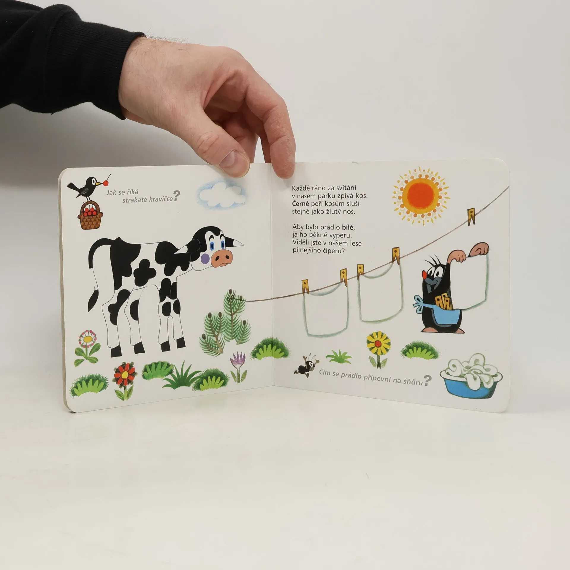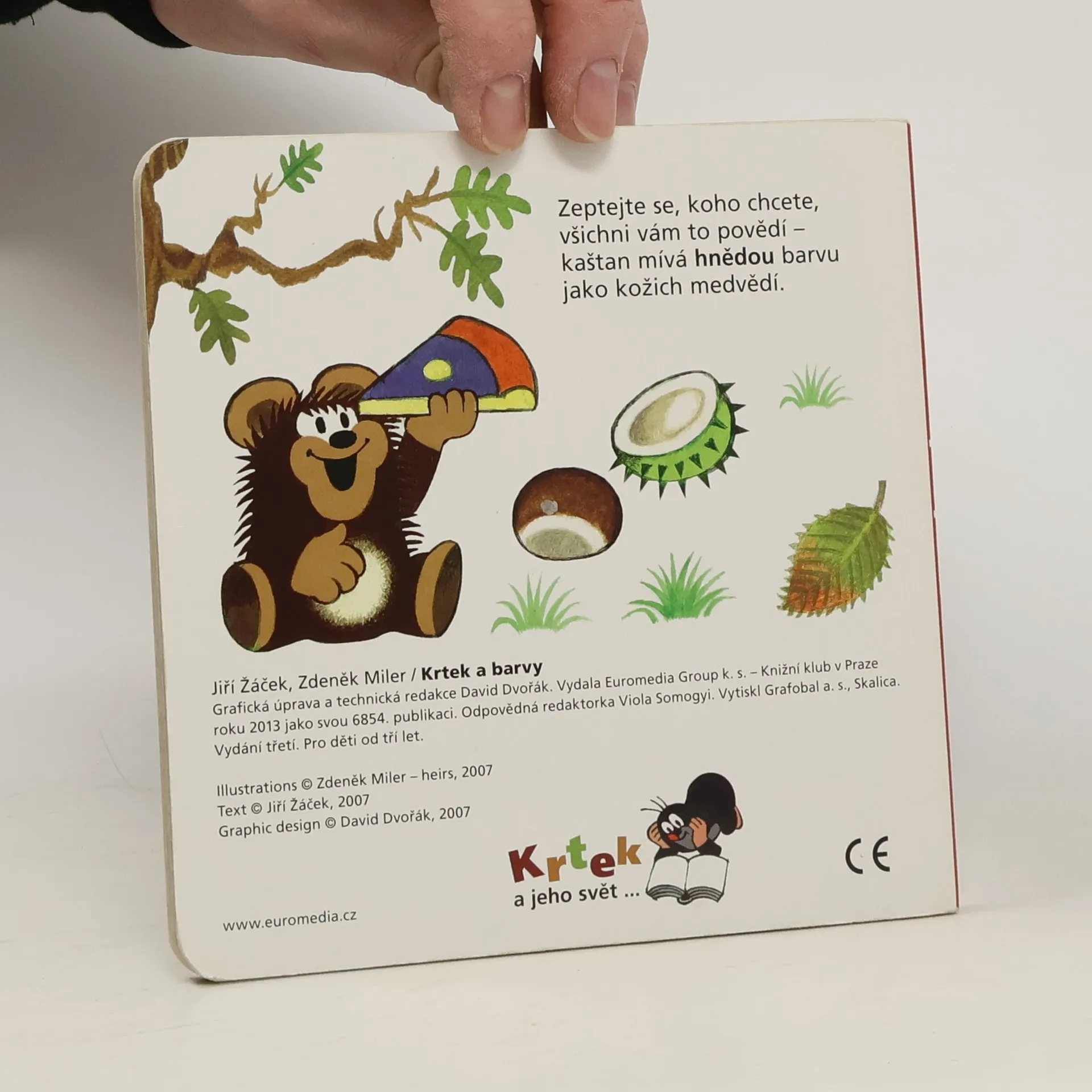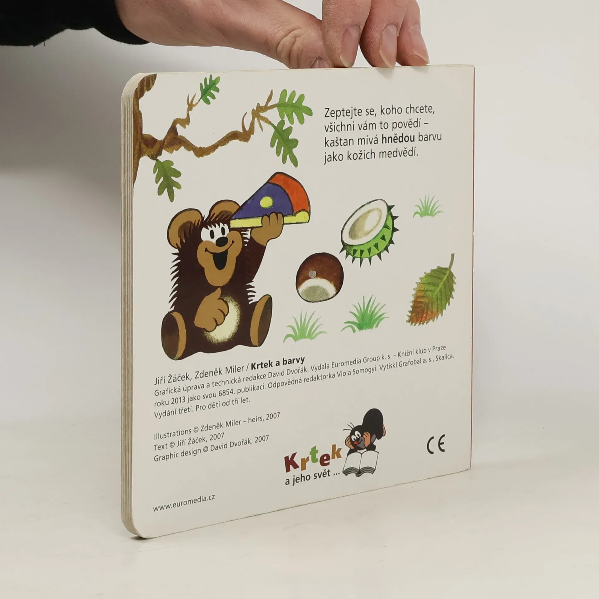Čtvrtý svazek poznávací řady leporel zavede nejmenší čtenáře do světa barev. S hravými obrázky Zdeňka Milera a jednoduchými vtipnými verši Jiřího Žáčka se děti naučí rozlišovat jednotlivé barvy, které nás obklopují. Učitelem v této škole pro nejmenší je oblíbený Krteček, který si připravil - společně s pejskem, žabkou, mravenečkem, zajícem, medvědem a dalšími kamarády - pro své malé žáčky zvídavé otázky.