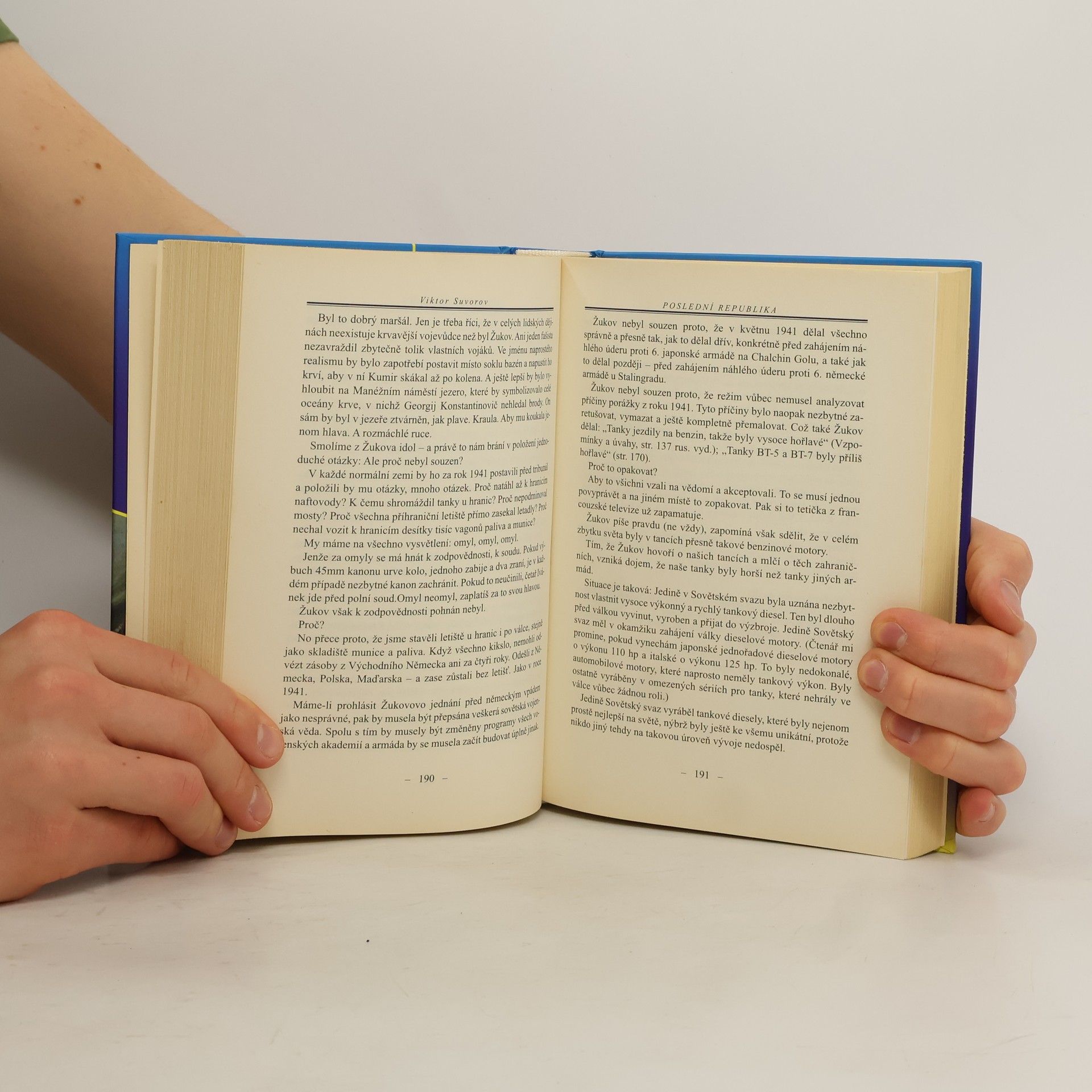 Proč Sovětský svaz prohrál druhou světovou válku Poněkud neotřelé, polemické, místy i značně vyhrocené názory na rozpoutání a průběh 2. světové války, úvahy o jiném možném vývoji událostí. Podle autora SSSR Velkou vlasteneckou válku vyhrál jen "trochu, málo, nedostatečně, rozhodně méně než mohl", odtud podtitul knihy Proč Sovětský svaz prohrál 2. světovou válku. Až s urputnou zavilostí čtenářům předkládá další a další argumenty a fakta, které se snaží interpretovat tak, aby doložil Stalinovy nekalé úmysly a mimořádnou připravenost sovětské Rudé armády na počátku 40. let 20. století na válečný konflikt nesmírného rozsahu, na "osvobozenecký" pochod celou Evropou... Velmi stručně řečeno: Suvorov tvrdí, že Hitler "jen" předběhl Stalina. Bez obalu a dosti náruživě se dohaduje s ruskými i zahraničními historiky, vysokými vojenskými činiteli, novináři i dalšími oponenty. Co je ale hodnověrné a opravdu stojí za zamyšlení a co je zřejmá či skrytá demagogie, musí posoudit čtenář sám. Nezpochybnitelná je ale skutečnost, že napadením Polska 1. září r. 1939 spustil 2. světovou válku Stalinův protějšek německý diktátor Adolf Hitler, který rovněž útokem na Sovětský svaz v červnu r. 1941 učinil z podobných otázek jen spekulace ... Mnohé odkazy přímo v textu nebo citace zřejmě nenahradí solidně zpracovaný (chybějící) poznámkový aparát a rejstříky. Fotografie.