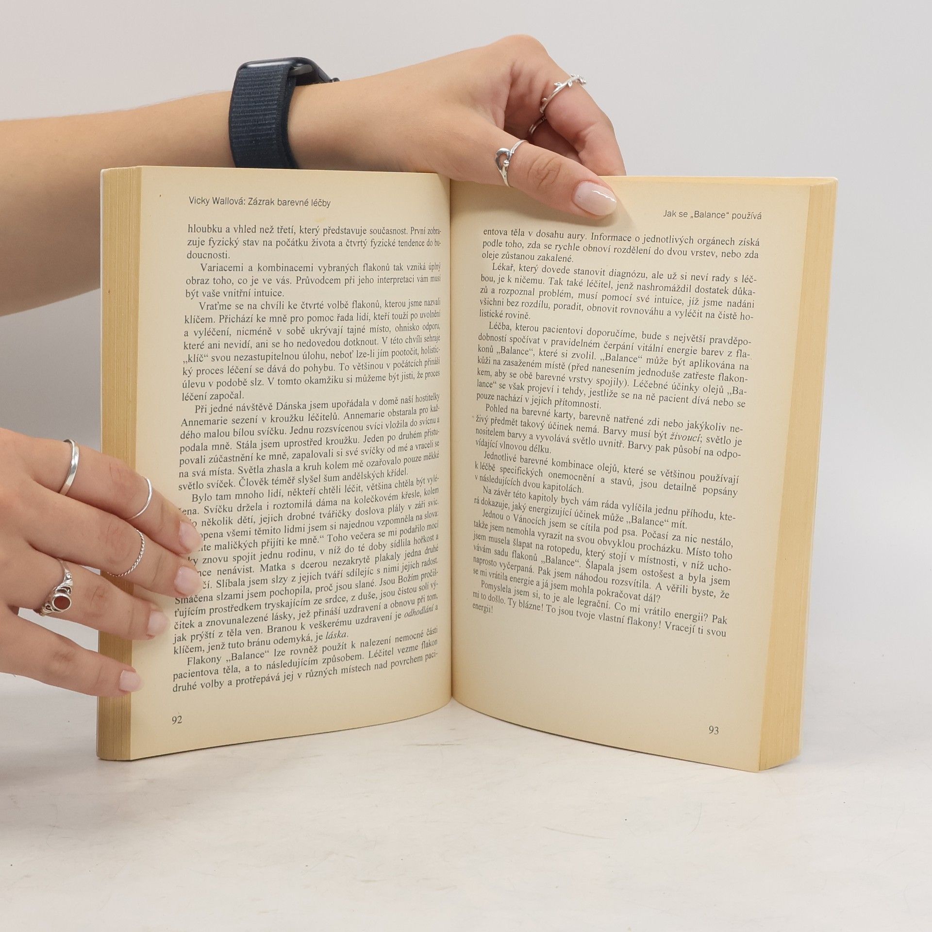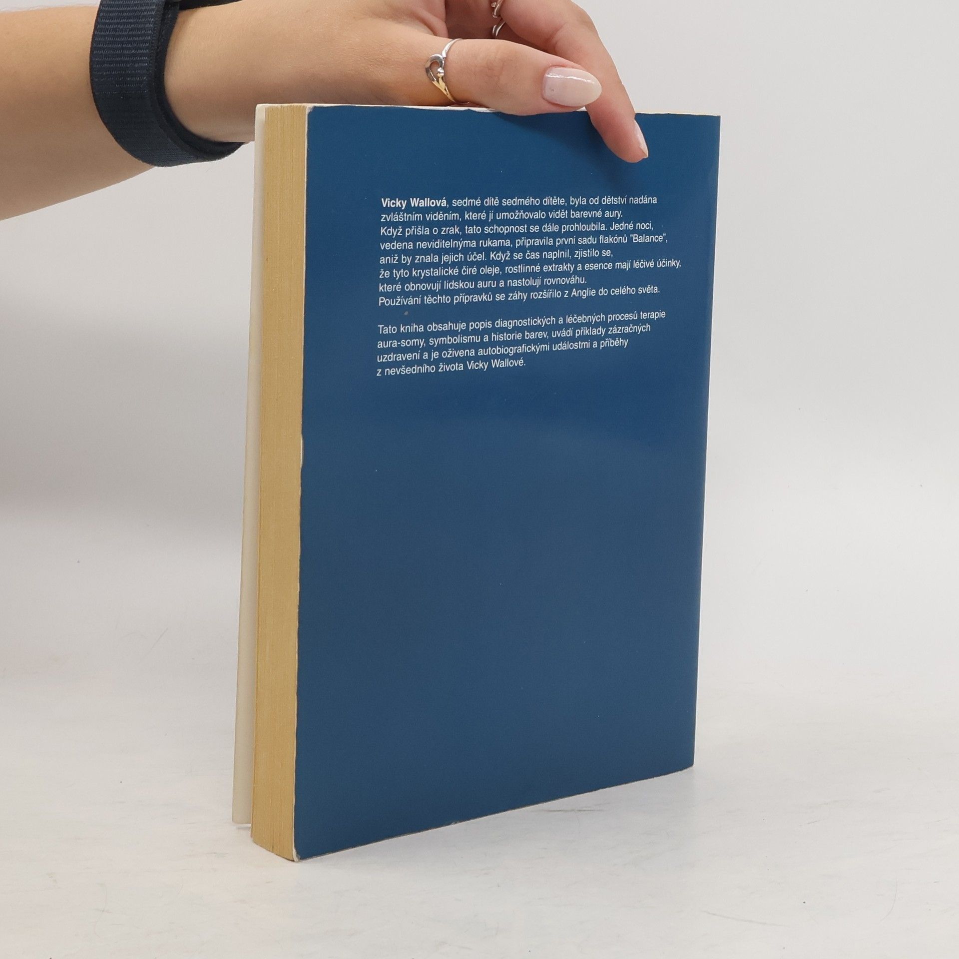 Aura-soma jako zrcadlo duše. Kniha autorky, která přišla o zrak, obsahuje popis diagnostických a léčebných procesů terapie aura-somy, symbolismu a historie barev, příklady uzdravení díky rostlinným extraktům autorky, které obnovují lidskou auru, a životní příběhy autorky.