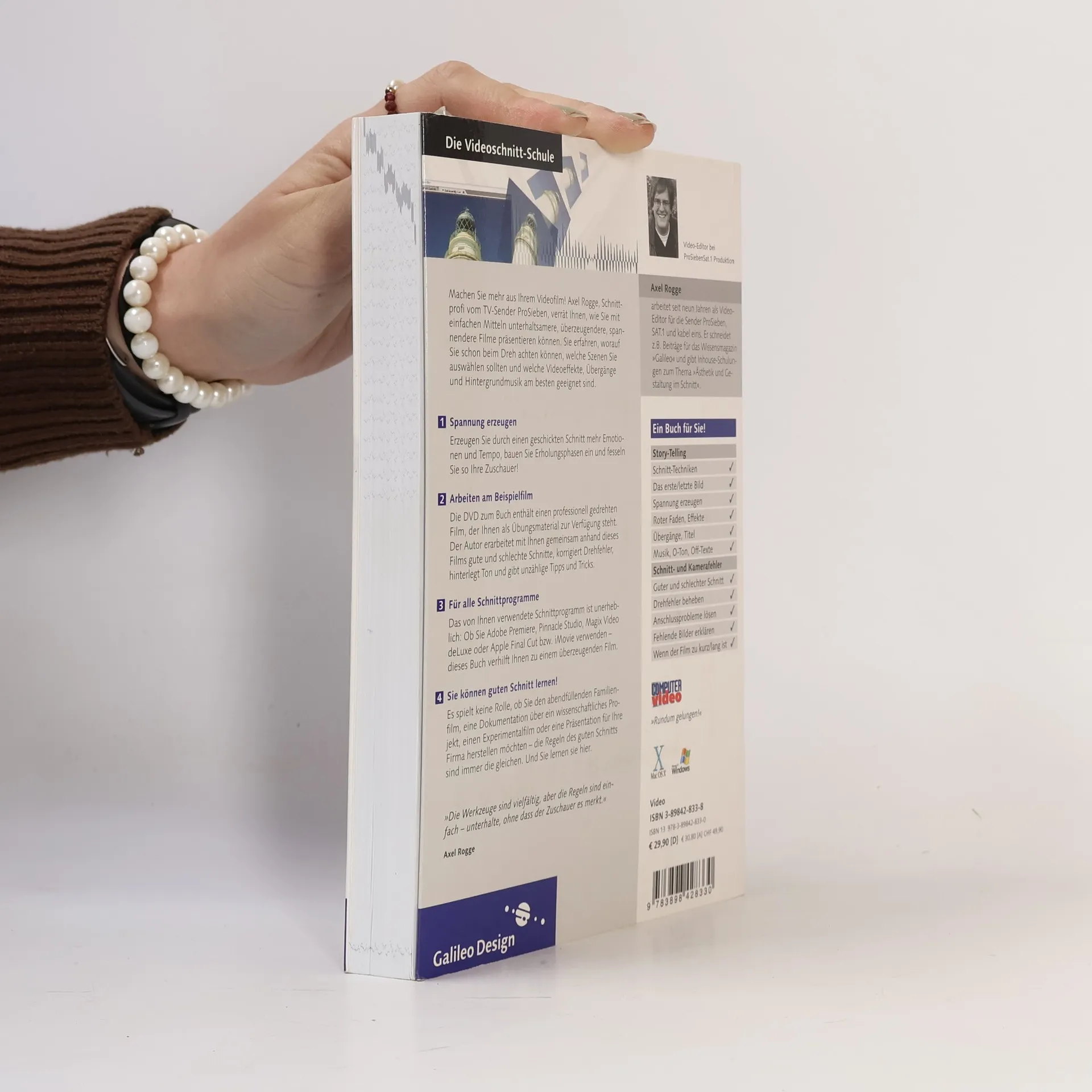 Machen Sie mehr aus Ihrem Videofilm! Axel Rogge, Schnittprofi vom TV-Sender ProSieben, verrät Ihnen, wie Sie mit einfachen Mitteln unterhaltsamere, überzeugendere, spannendere Filme präsentieren können. Sie erfahren, worauf Sie schon beim Dreh achten können, welche Szenen Sie auswählen sollten und welche Videoeffekte, Übergänge und Hintergrundmusik am besten geeignet sind. Erzeugen Sie durch einen geschickten Schnitt mehr Emotionen und Tempo, bauen Sie Erholungsphasen ein und fesseln Sie so Ihre Zuschauer! Die 2. Der Autor erarbeitet mit Ihnen gemeinsam anhand dieses Films gute und schlechte Schnitte, korrigiert Drehfehler, hinterlegt Ton und gibt unzählige Tipps und Tricks. Das von Ihnen verwendete Schnittprogramm ist dabei unerheblich: Adobe Premiere, Pinnacle Studio, Magix Video Deluxe oder Apple Final Cut und iMovie. Galileo Press heißt jetzt Rheinwerk Verlag.