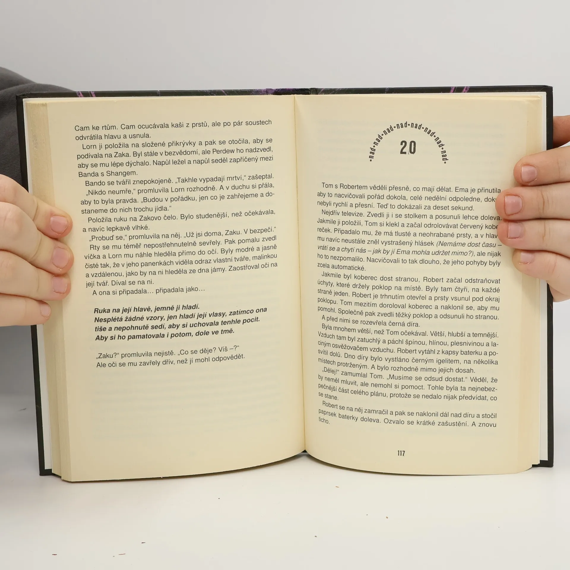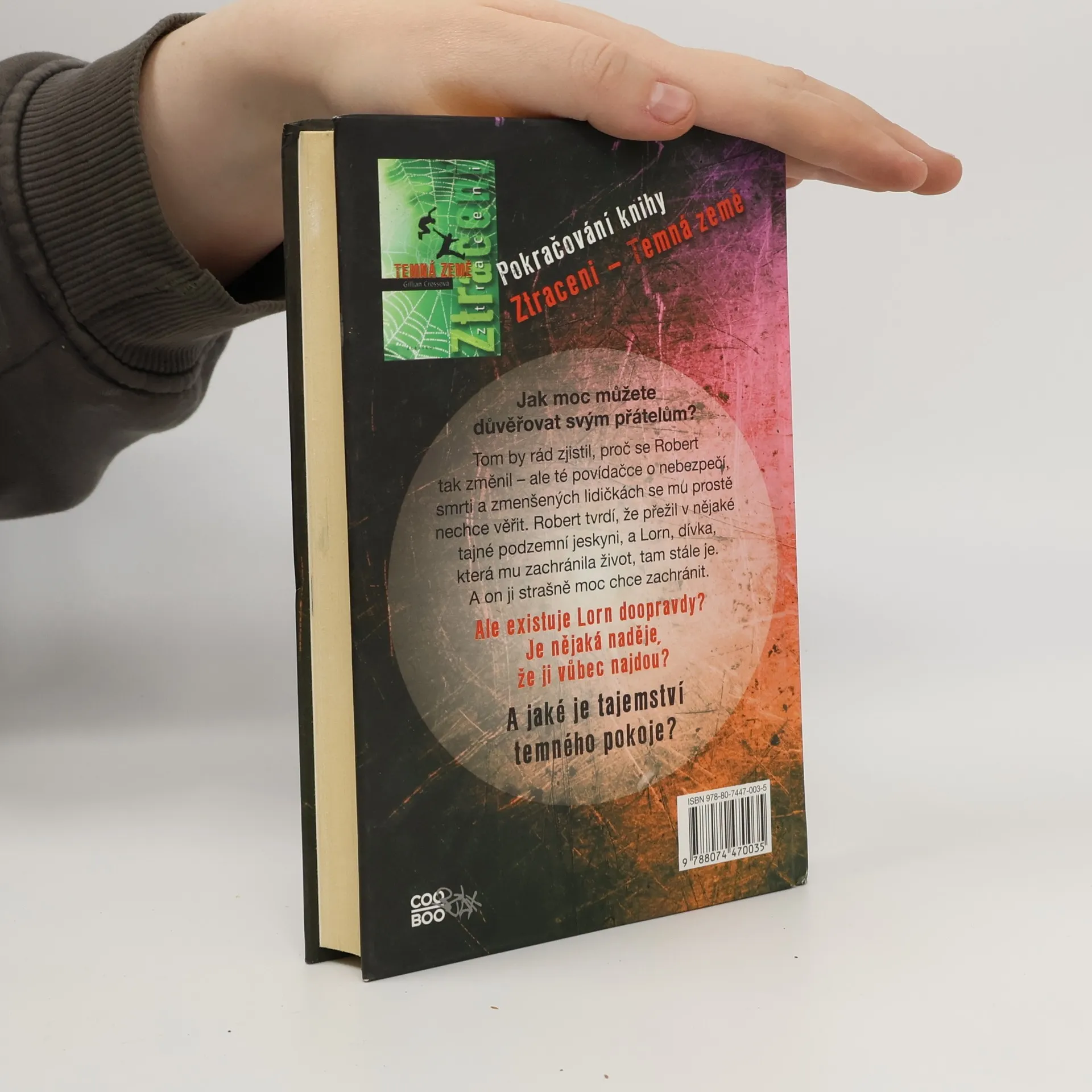 Jak moc můžete důvěřovat svým přátelům? Tom by rád zjistil, proč se Robert tak změnil – ale té povídačce o nebezpečí, smrti a zmenšených lidičkách se mu prostě nechce věřit. Robert tvrdí, že přežil v nějaké tajné podzemní jeskyni, a Lorn, dívka, která mu zachránila život, tam stále je. A on ji strašně moc chce zachránit. Ale existuje Lorn doopravdy? Je nějaká naděje, že ji vůbec najdou? A jaké je tajemství Temného pokoje?