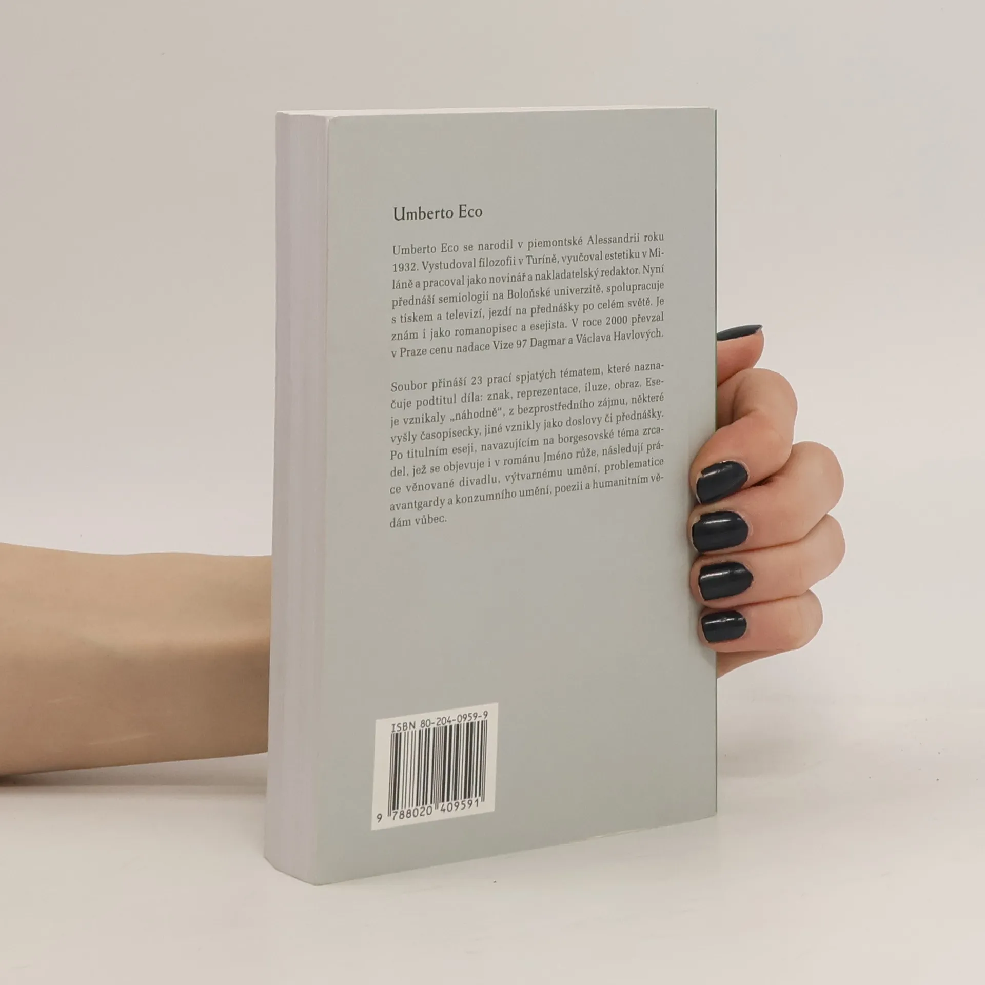 Znak, reprezentace, iluze, obraz. Soubor 24 prací spjatých tématem, které naznačuje podtitul díla: znak, reprezentace, iluze, obraz. Eseje jsou psány čtivým jazykem přístupným široké veřejnosti a vznikaly „náhodně“, pod tlakem bezprostředního zájmu. Po titulním eseji, navazujícím na borgesovské téma zrcadel, jež se objevuje i v románu Jméno růže, následují práce věnované divadlu, výtvarnému umění, problematice avantgardy a konzumního umění, poezii, humanitním vědám.