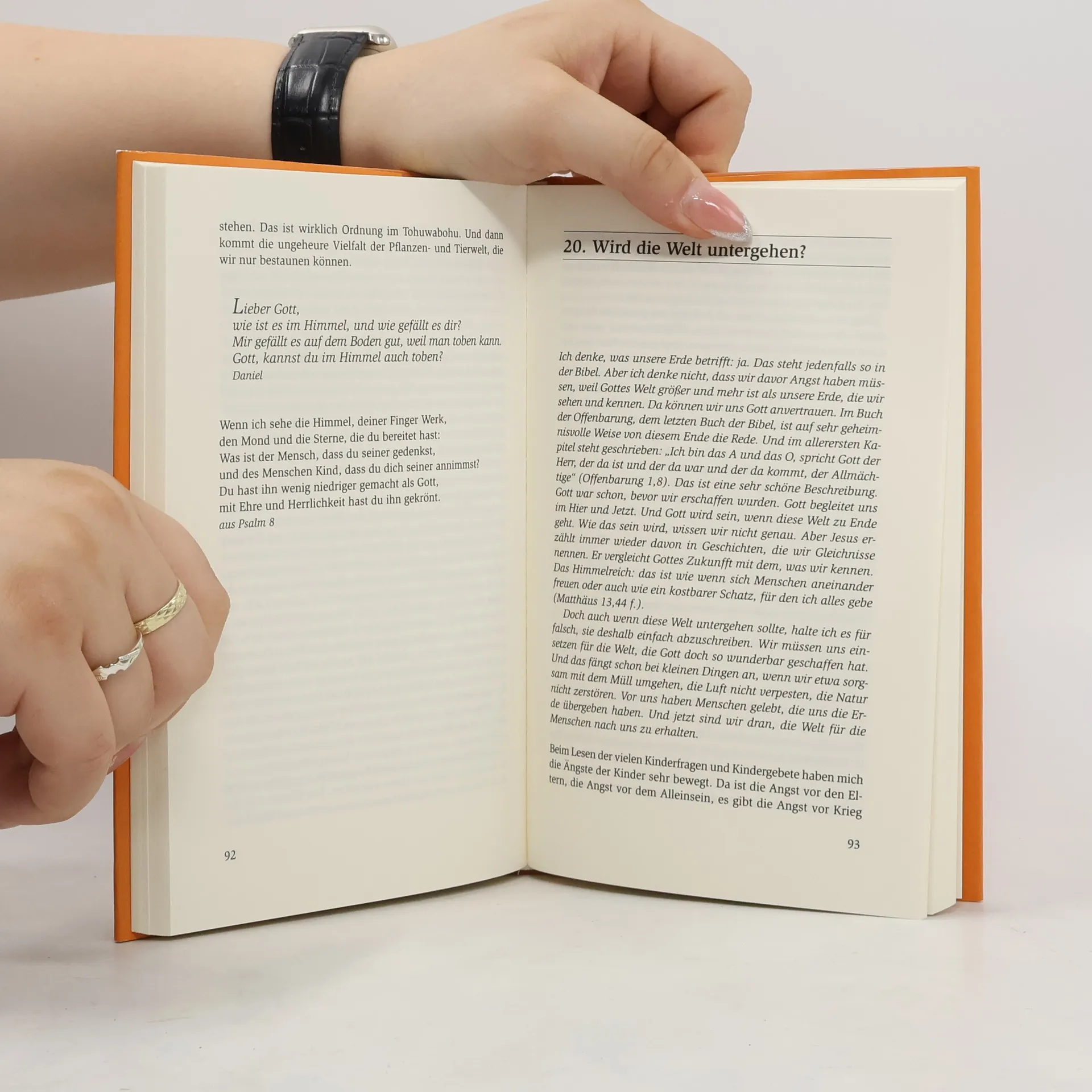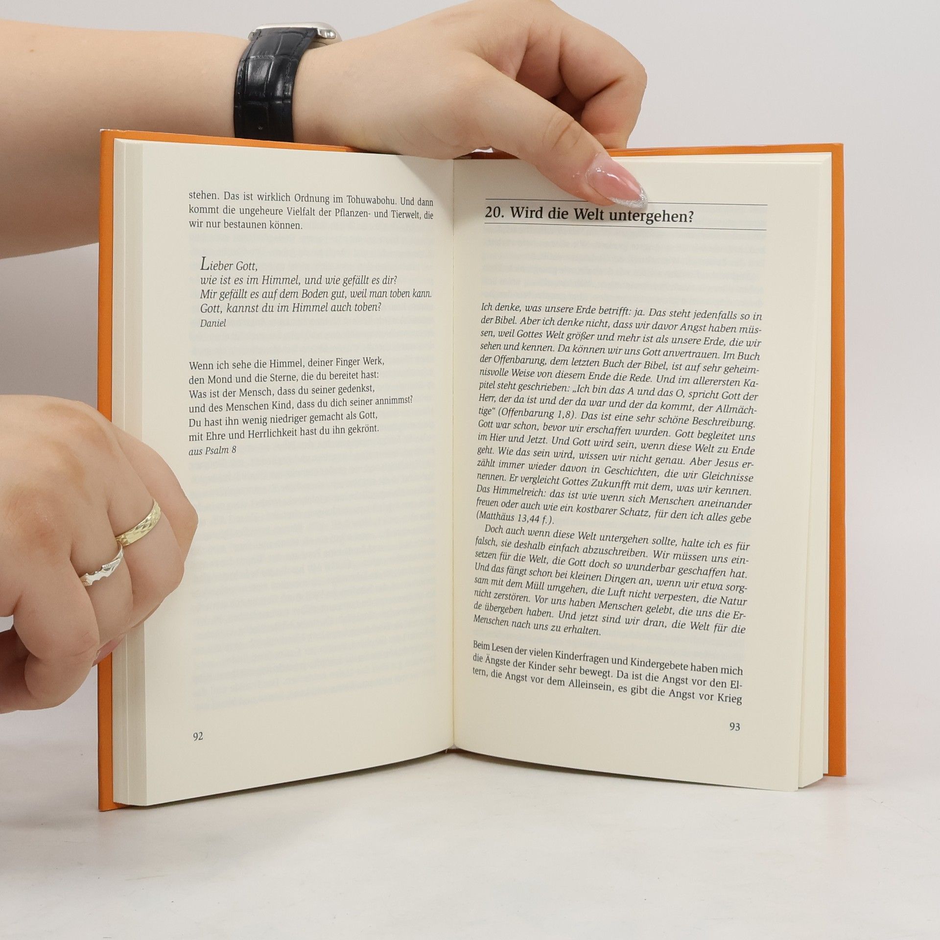 „Warum muss man Süßes teilen?“ - „Ist Gott durchsichtig?“ - „Warum ist Papa weggegangen?“ - Kinder - vor allem im Grundschulalter - wollen wissen, was es mit dem Himmel auf sich hat und mit dem Zusammenleben auf der Erde, ob es Engel gibt, woher die Liebe kommt, wann das Leben Sinn macht und was das mit dem Tod soll. Nicht immer wissen Eltern weiter, nicht immer wissen sie, wie sie den Fragen ihres Kindes begegnen sollen. Oft ist ihre eigene Vorstellung von dem, was jenseits des Sichtbaren ist, nicht ganz klar, manchmal sind sie peinlich berührt, unsicher, ob und wie sie - zum Beispiel - beten sollen, wenn ihr Kind danach fragt. In diesem Buch sind Fragen in 30 Themen gebündelt. Margot Käßmann, vierfache Mutter, Bischöfin, gibt Antworten in un-konventioneller, religiöser Sprache. Antworten, die einleuchten.