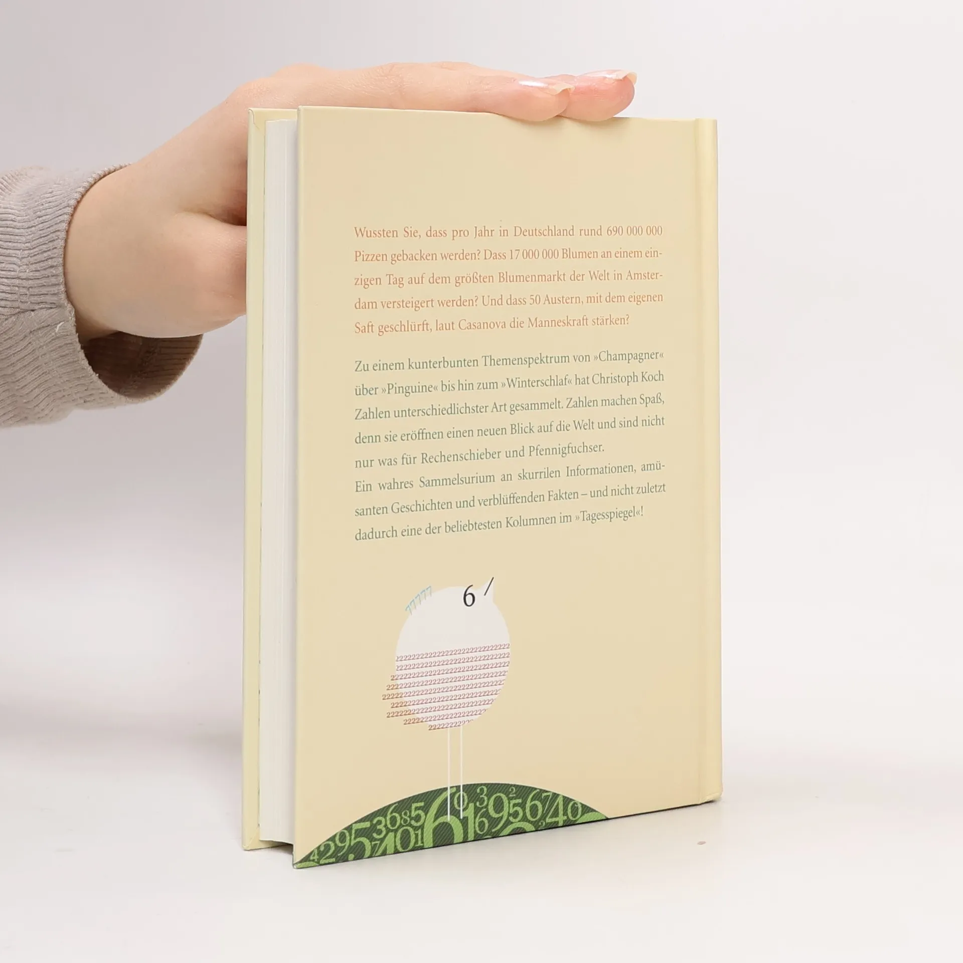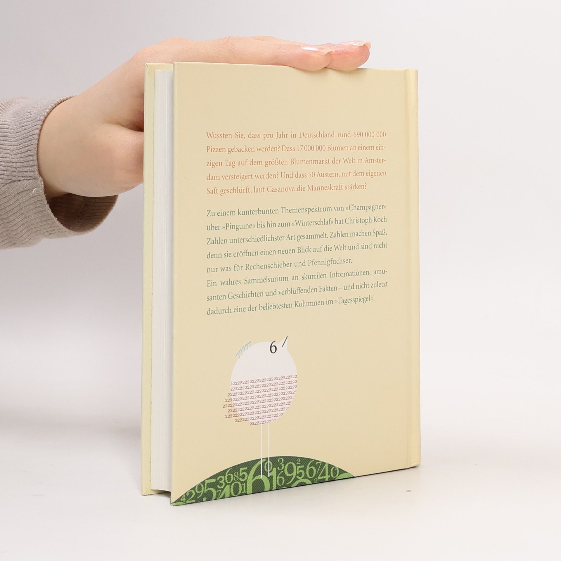 Kochs Sammelsurium der Zahlen - amüsant, verblüffend, skurril „Christoph Koch tritt den Beweis an, dass die besten Geschichten und Porträts manchmal allein durch aussagekräftige Fakten und Zahlen entstehen können.“ Süddeutsche Zeitung „Zahlen machen richtig Spaß! Ein Buch, in dem man immer wieder gerne herumstöbert.“ Die Neue Frau „Schmunzeln garantiert!“
