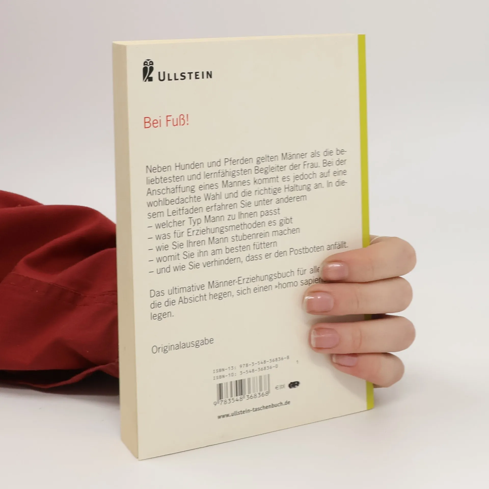 Neben Hunden und Pferden gelten Männer als die beliebtesten und lernfähigsten Begleiter der Frau. Bei der Anschaffung eines Mannes kommt es jedoch auf eine wohlbedachte Wahl und die richtige Haltung an. In diesem Leitfaden erfahren Sie u. a. • welcher Typ Mann zu Ihnen paßt • was für Erziehungsmethoden es gibt • wie Sie Ihren Mann stubenrein machen • womit Sie ihn am besten füttern • und wie Sie verhindern, daß er den Postboten anfällt. Das ultimative Männer-Erziehungsbuch für alle Frauen, die die Absicht hegen, sich einen 'homo sapiens' zuzulegen.
