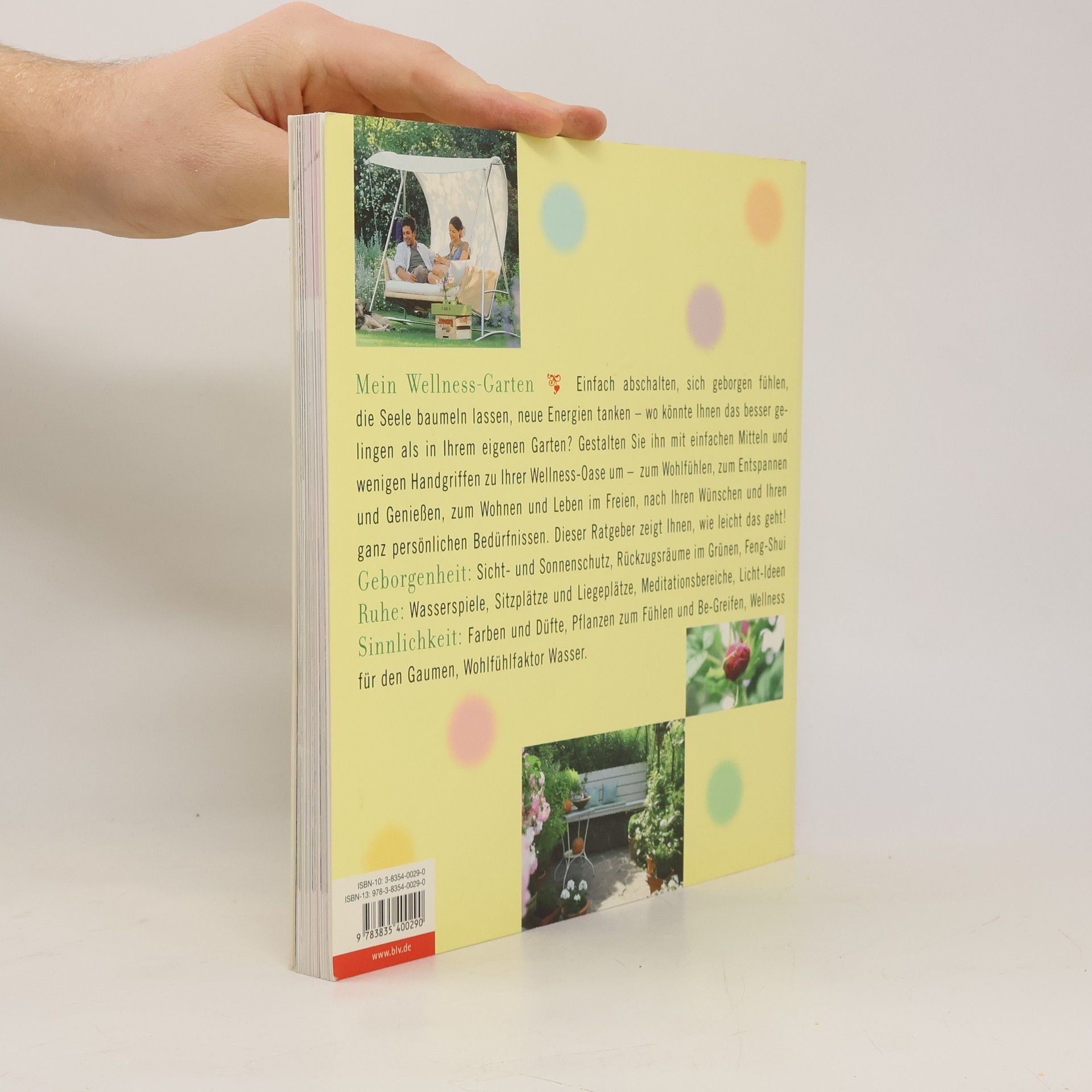 Der Garten als Refugium für die Seele: Sicht- und Sonnenschutz, Rückzugsräume im Grünen, Feng Shui, Sitz- und Liegeplätze, Meditationsbereiche, Licht-Ideen, Farben und Düfte, Pflanzen zum Fühlen und Be-Greifen, Wellness für den Gaumen, Wohlfühlfaktor Wasser.