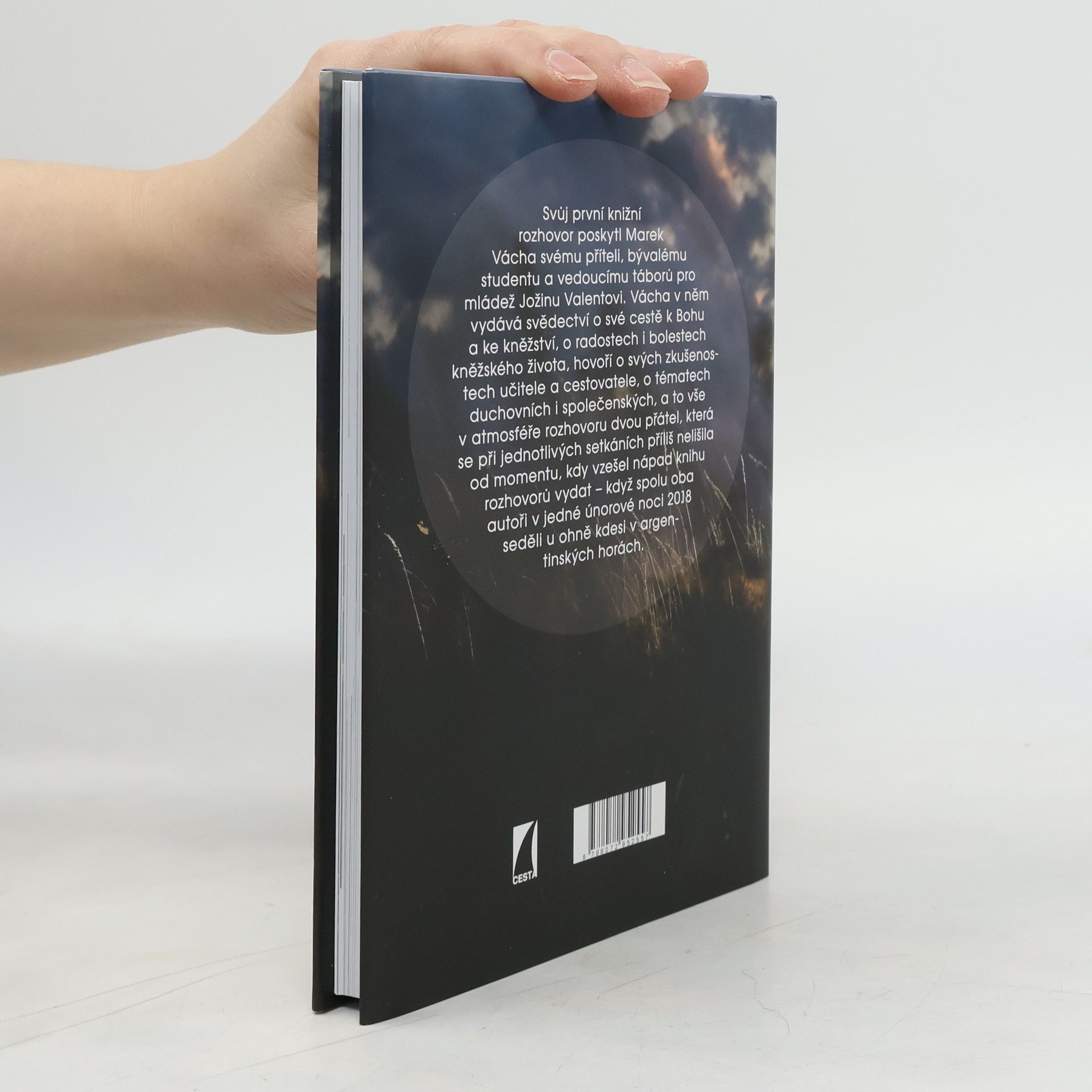 Svůj první knižní rozhovor poskytl Marek Vácha svému příteli, bývalému studentu a vedoucímu táborů pro mládež Jožinu Valentovi. Vácha v něm vydává svědectví o své cestě k Bohu a ke kněžství, o radostech i bolestech kněžského života, hovoří o svých zkušenostech učitele a cestovatele, o tématech duchovních i společenských, a to vše v atmosféře rozhovoru dvou přátel, která se při jednotlivých setkáních příliš nelišila od momentu, kdy vzešel nápad knihu rozhovorů vydat – když spolu oba autoři v jedné únorové noci 2018 seděli u ohně kdesi v argentinských horách.