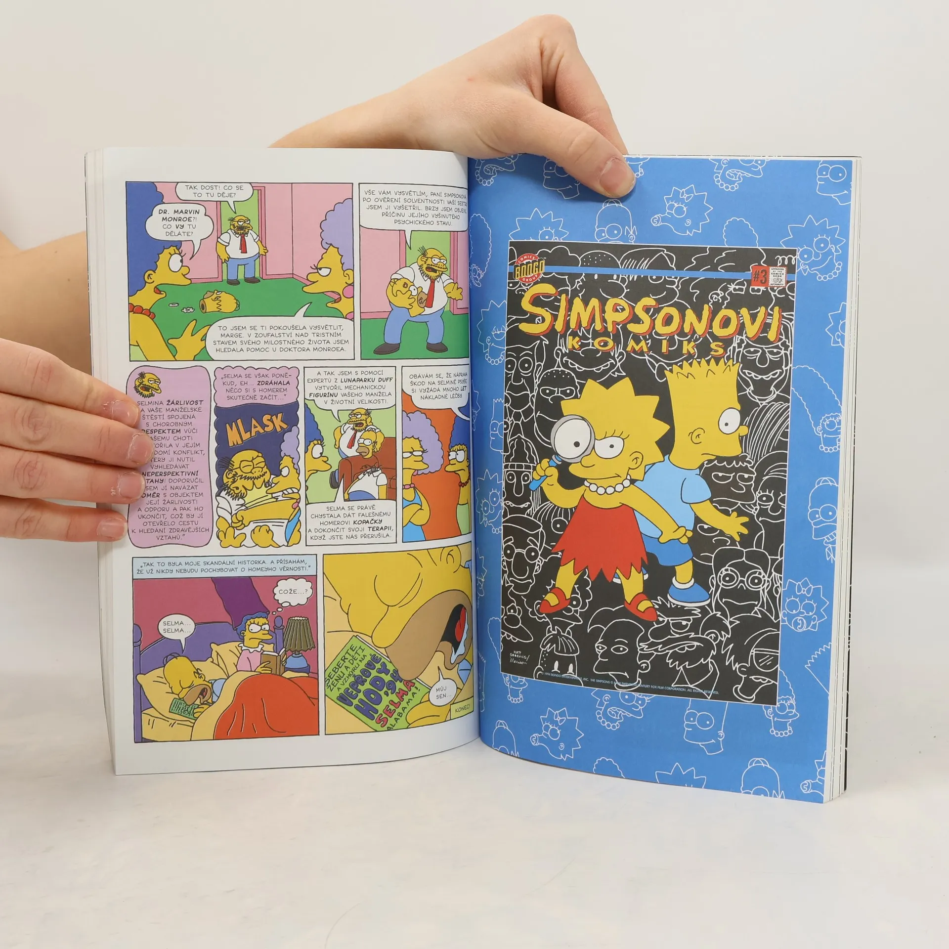 Konečně jsou tady! Ohromný, kolosální a hlavně nenakrmitelný Homer vyrostlý po nezdařeném experimentu, Bart, který se dostane do moci svého úhlavního nepřítele Leváka Boba, Šáša coby zvláštní agent i speciální hororový příběh o sběrateli komiksů - a mnohem víc. Ředitel Skinner, odporně bohatý Berns a jeho pato-a-kdo-ví-co-ještě-lízal Smithers, Marge, Líza i Maggie, ti všichni se jen třesou na to, aby vás mohli pobavit. Příběhy: Ohromný kolosální Homer Sběratel Bob se vrací! Prokleté romance Záhada zmizení Springfieldské Pumy Šáša, agent útvaru K.L.A.U.N. Je to v kartách Dobrodružství drsňáka jménem Busman