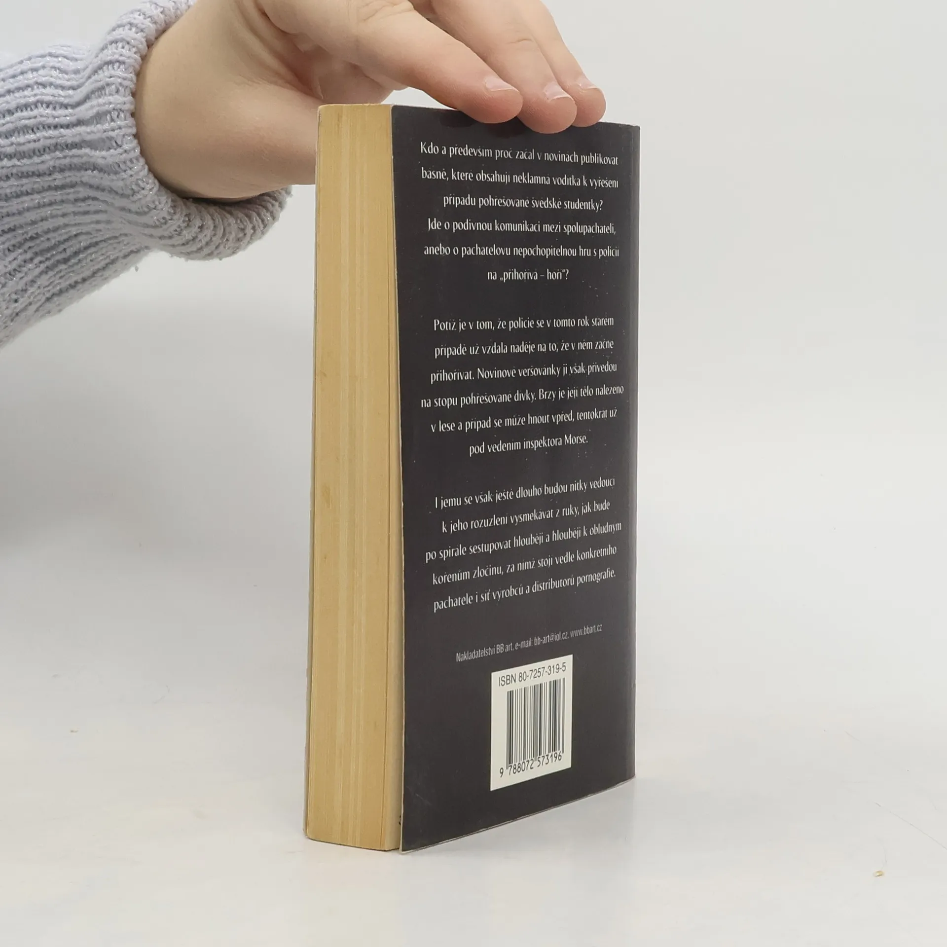 Kdo a pědevším proč začal v novinách publikovat básně, které obsahují neklamná vodítka k vyřešení případu pohřešované švédské studentky? Jde o podivnou komunikaci mezi spolupachateli, anebo o pachatelovu nepochopitelnou hru s policií na „přihořívá - hoří"? Potíž je v tom, že policie se v tomto rok starém případě už vzdala naděje na to, že v něm začne přihořívat. Novinové veršovánky ji však přivedou na stopu pohřešované dívky. Brzy je její tělo nalezeno v lese a případ se může hnout vpřed, tentokrát už pod vedením inspektora Morse. I jemu se však ještě dlouho budou nitky vedoucí k jeho rozuzlení vysmekávat z ruky, jak bude po spirále sestupovat hlouběji a hlouběji k obludným kořenům zločinu, za nímž stojí vedle konkrétního pachatele i síť výrobců a distributorů pornografie.