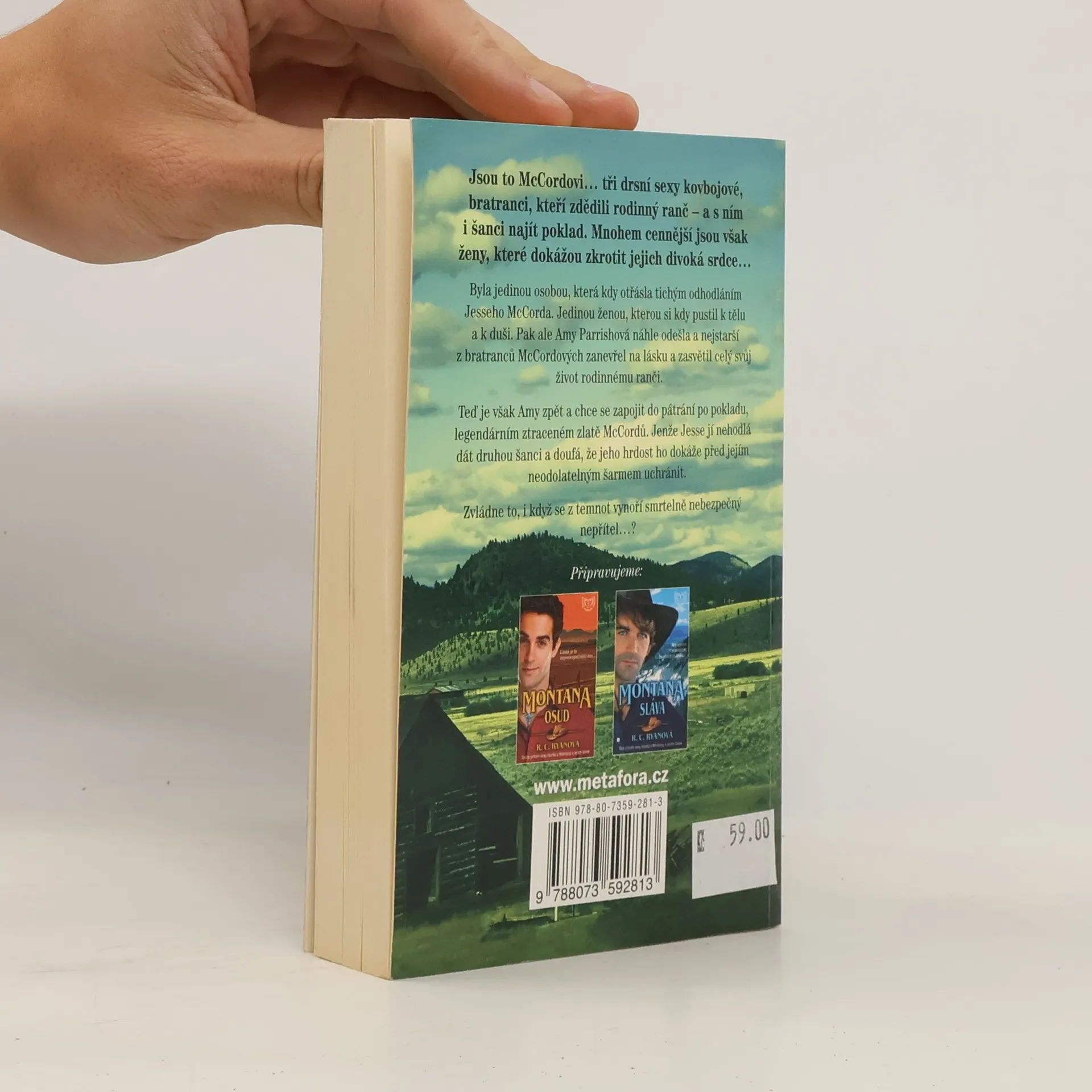 Série McCords. Byla jedinou osobou, která kdy otřásla tichým odhodláním Jesse McCorda. Jedinou ženou, kterou si kdy pustil k tělu a k duši. Pak ale Amy Parishová náhle odešla a nejstarší z bratranců McCordových zanevřel na lásku a zasvětil celý svůj život rodinnému ranči. Teď je však Amy zpět a chce Jesseovi pomoct najít rodinný poklad, legendární zlato McCordů. Jenže Jesse jí nehodlá dát druhou šanci a doufá, že jeho hrdost ho dokáže před jejím neodolatelným šarmem uchránit. Širou a nebezpečnou prérií se však rychle blíží neviditelný nepřítel, který ohrožuje nejenom jejich životy.