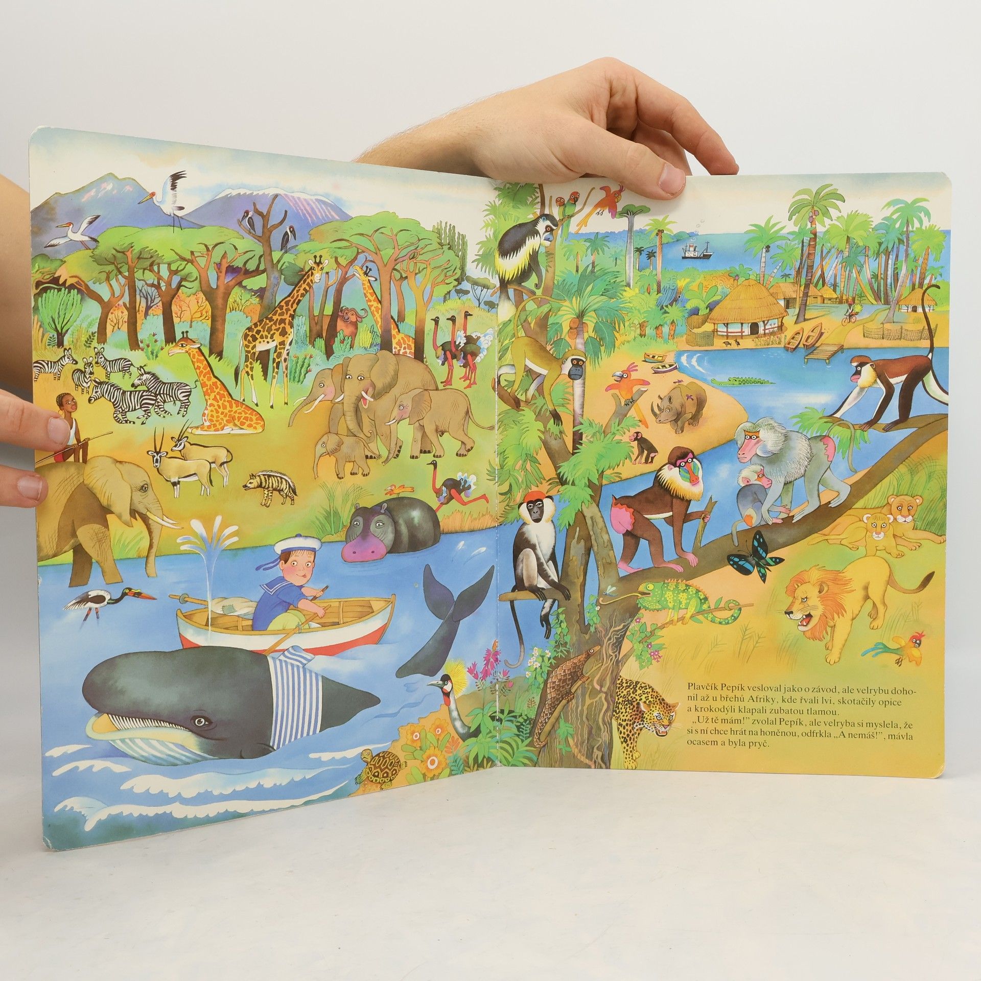 Velké leporelo pro nejmenší s barevnými ilustracemi zvířat z celého světa a pohádkovým příběhem.