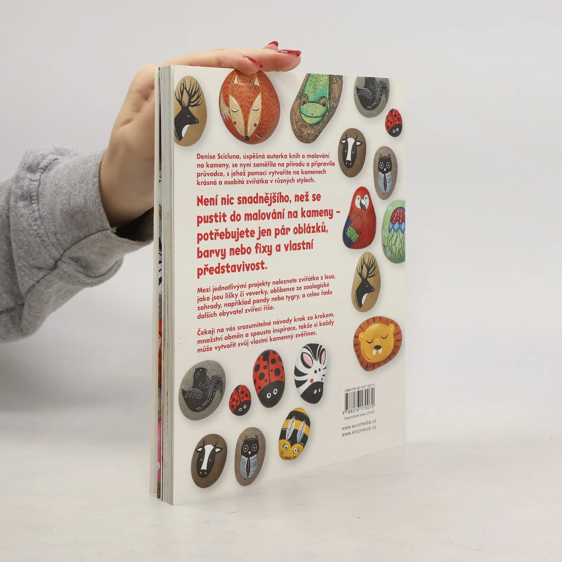 V této knize na vás čeká svět plný fantazie, kreativity a spousty malých stvoření. Malování na kameny nemůže být jednodušší. Nepotřebujete drahé materiály ani nemusíte umět složité techniky. Stačí kámen, barvy, představivost a tato kniha. Pak už se snadnými postupy krok za krokem naučíte vykouzlit z oblázků všechna možná živá stvoření, včetně ptáků, broučků, ryb, hadů, obojživelníků a savců.
