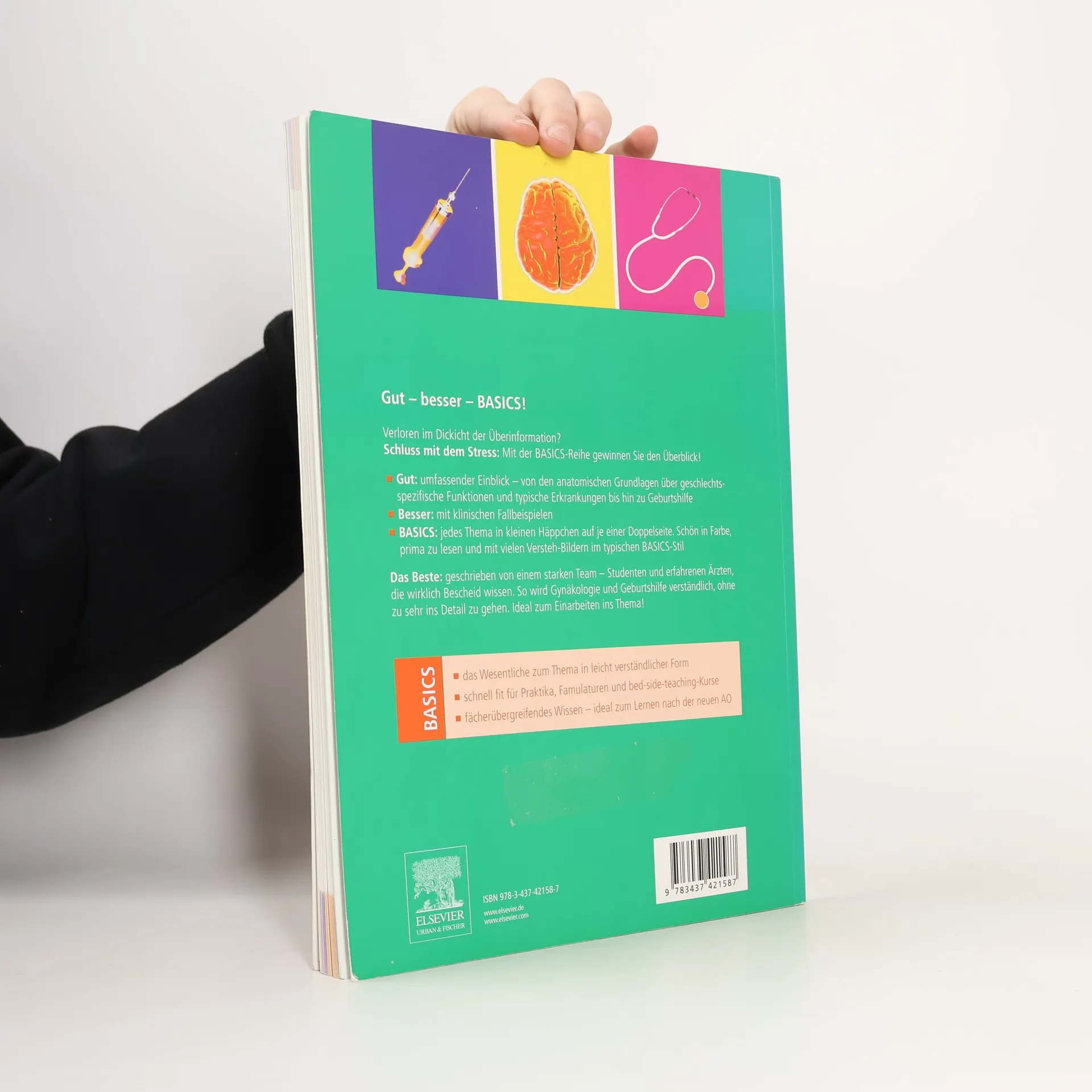 Die BASICS-Reihe bringt, was alle wollen und keiner hat: den perfekten Überblick über die gesamte Bandbreite der Gynäkologie und Geburtshilfe. Gut: umfassender Einblick - von den physiologischen und anatomischen Grundlagen über die wichtigsten Krankheitsbilder bis zur Therapie Besser: mit klinischen Fallbeispielen BASICS: jedes Thema in kleinen Häppchen auf je einer Doppelseite. Schön in Farbe, prima zu lesen und mit vielen Versteh-Bildern im typischen BASICS-Stil Das Beste: geschrieben von Studenten, die wissen, wie man Gynäkologie und Geburtshilfe kapiert, ohne zu sehr ins Detail zu gehen. Ideal zum Einarbeiten ins Thema!