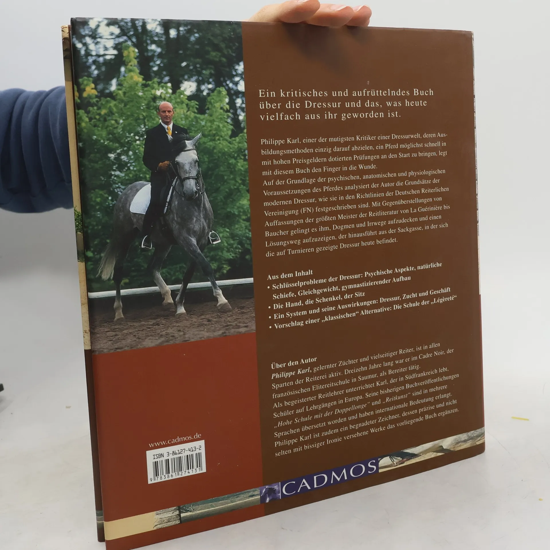 Philippe Karl, einer der mutigsten Kritiker einer Dressurwelt, für die ein Pferd „Material“ ist und deren Ausbildungsmethoden einzig darauf abzielen, ein Pferd möglichst schnell in mit hohen Preisgeldern dotierten Prüfungen an den Start zu bringen, legt mit diesem Buch den Finger in die Wunde. Auf der Grundlage der psychischen, anatomischen und physiologischen Voraussetzungen des Pferdes analysiert der Autor die Grundsätze der modernen Dressur, wie sie in den Richtlinien der Deutschen Reiterlichen Vereinigung (FN) festgeschrieben sind. Mit Gegenüberstellungen von Auffassungen der größten Meister der Reitliteratur von La Guérinière bis Baucher gelingt es ihm, Dogmen und Irrwege aufzudecken und einen Lösungsweg aufzuzeigen, der hinausführt aus der Sackgasse, in der sich die auf Turnieren gezeigte Dressur heute befindet. Anschauliche Zeichnungen – von Philippe Karl selbst erstellt – und zahlreiche Fotos ergänzen das umfangreiche Werk.