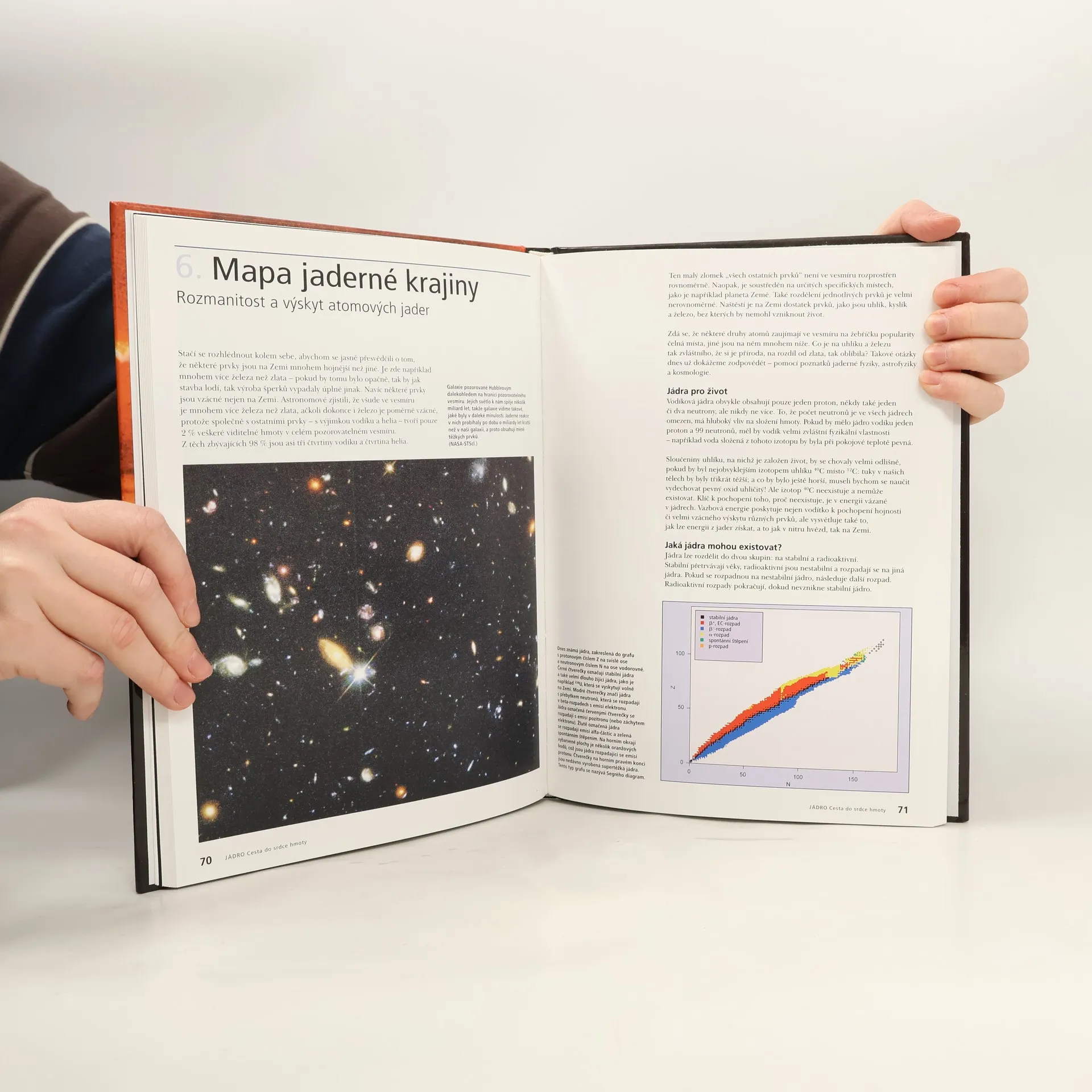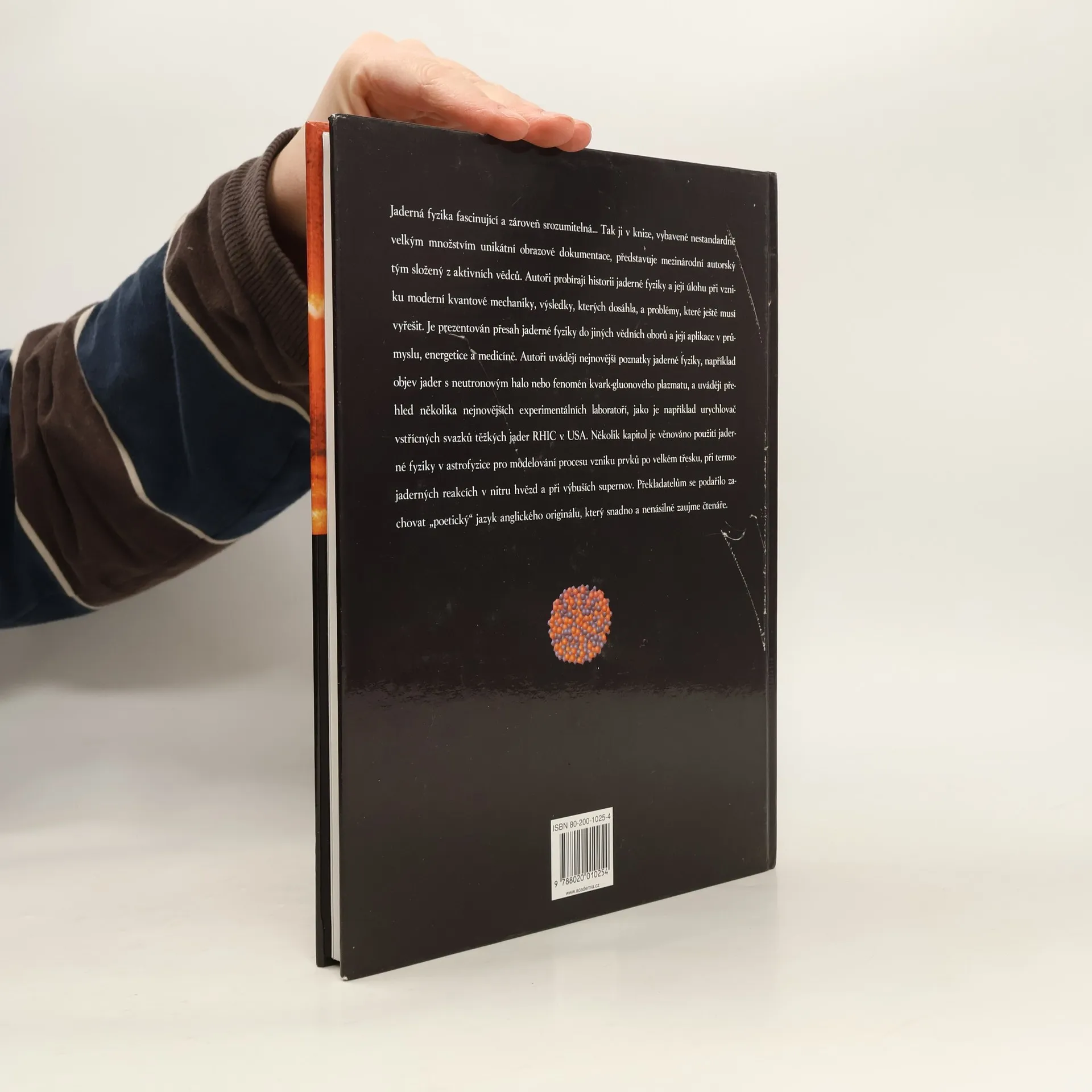 O cestě lidského poznání do srdce hmoty. Publikace prezentuje na přístupné úrovni podstatné stránky jaderné fyziky: její historii a úlohu při vzniku moderní kvantové vědy, hlavní otázky, které si klade, nejdůležitější výsledky, přesah do jiných vědních disciplín i aplikace v průmyslu, energetice a medicíně. Text doplňují atraktivní fotografie a ilustrace, které názorně dokreslují principy důležitých experimentálních zařízení a základních jaderných procesů. Připomíná také osobnosti moderní fyziky, uvádí čtenáře do prostředí současných laboratoří a přibližuje úchvatné vesmírné děje. datum vydání: 6.8.2003