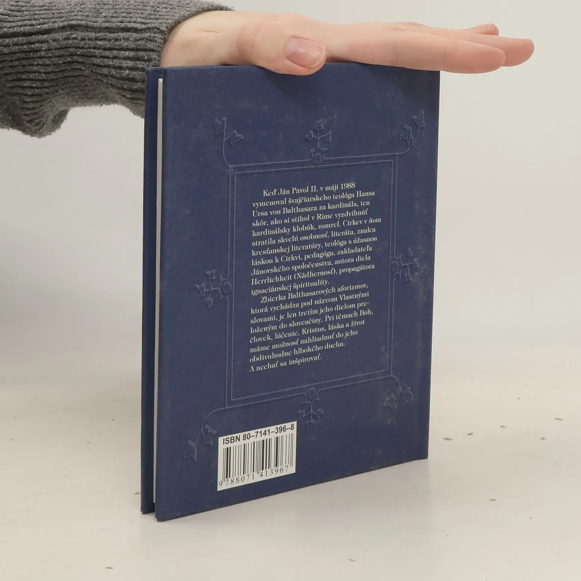 Keď Ján Pavol II. v máji 1988 vymenoval švajčiarskeho teológa Hansa Ursa von Balthasara za kardinála, ten skôr, ako si stihol v Ríme vyzdvihnúť kardinálsky klobúk, zomrel. Cirkev v ňom stratila skvelú osobnosť, literáta, znalca kresťanskej literatúry, teológa s úžasnou láskou k Cirkvi, pedagóga, zakladateľa Jánovského spoločenstva, autora diela Herrlichkeit (Nádhernosť), propagátora ignaciánskej špirituality. Zbierka Balthasarových aforizmov, ktorá vychádza pod názvom Vlastnými slovami, je len tretím jeho dielom preloženým do slovenčiny. Pri témach Boh, človek, lúčenie, Krisus, láska a život máme možnosť nahliadnuť do jeho obdivuhodne hlbokého ducha. A nechať sa inšpirovať.