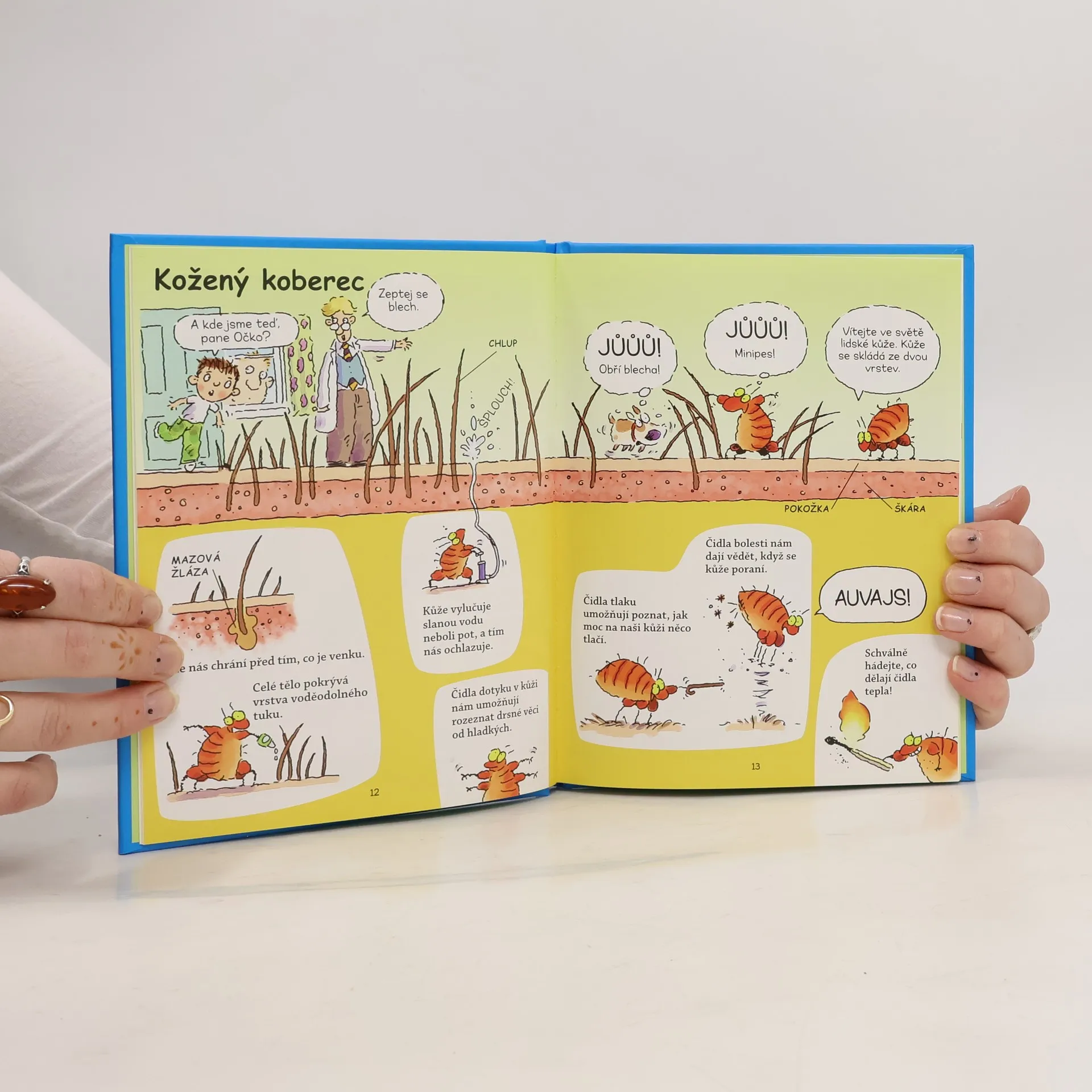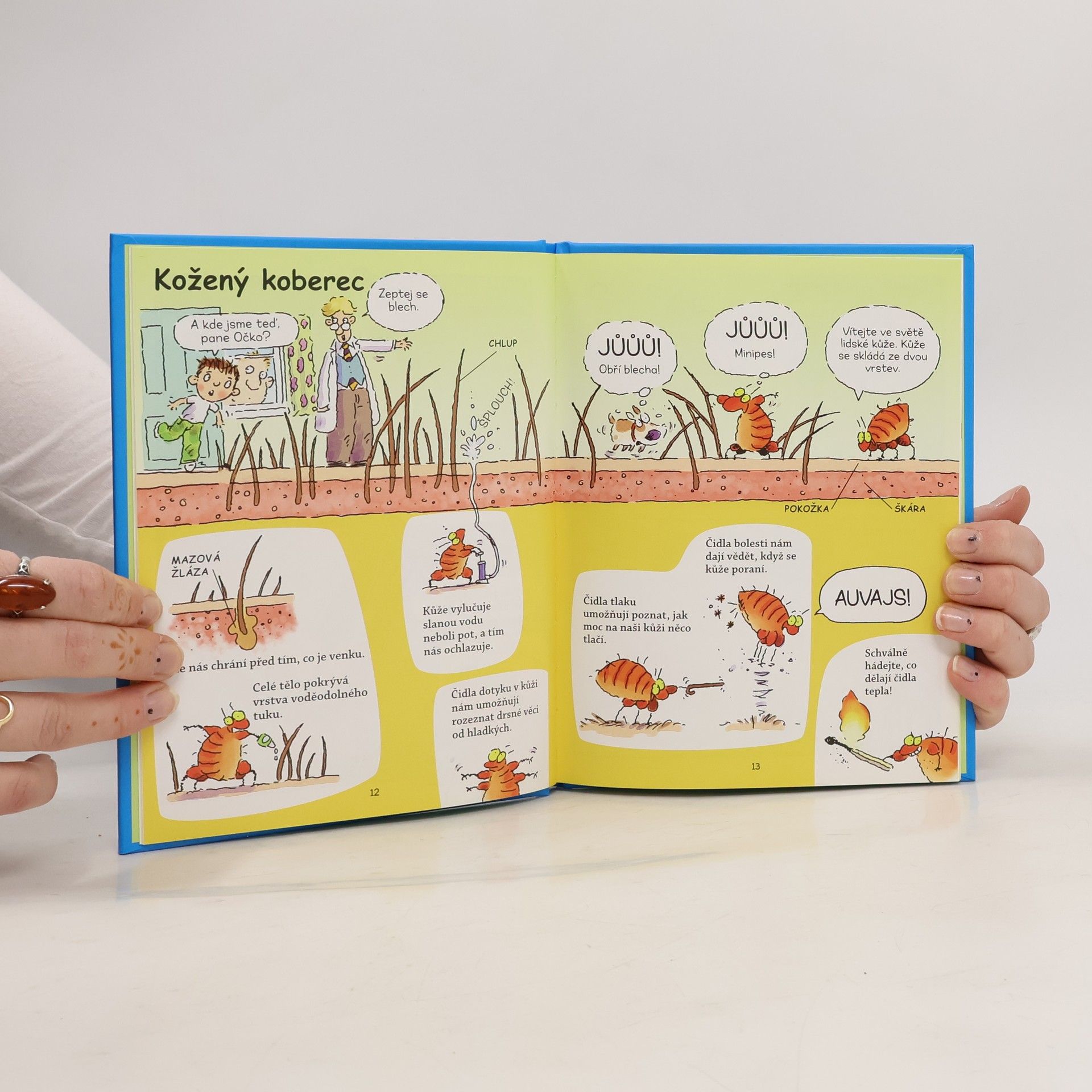 Vítejte v kouzelném Davidově domě, kde se může stát cokoli (a taky se to často stane). Kromě Davida a jeho žravého psa Moulíka se tu setkáte s panem Očkem (vševědoucím správcem domu), nápaditým vynálezcem Koumesem či Kubou Kutílkem, specialistou na převleky. V Lidském těle si budete moci přečíst, kde máte v těle kladívko, kovadlinku a třmínek, jak dlouhá máte střeva či jak rychle umíte kýchat.