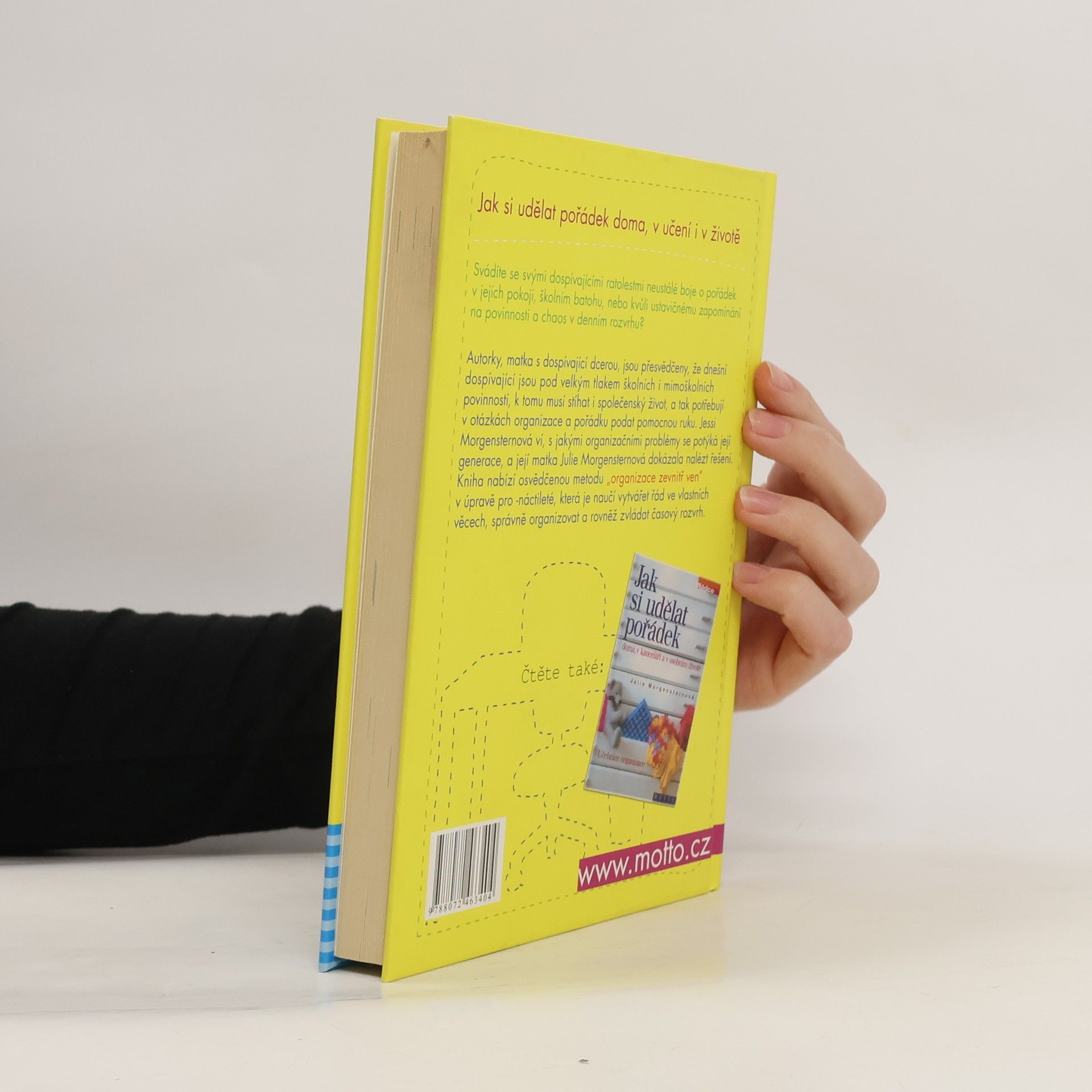 Autorky této knihy, matka s dospívající dcerou, jsou přesvědčeny, že dnešní dospívající jsou pod velkým tlakem školních i mimoškolních povinností, k tomu musí stíhat i společenský život, a tak potřebují v otázkách organizace a pořádku podat pomocnou ruku. Jessi Morgensternová ví, s jakými organizačními problémy se potýká její generace, a její matka Julie Morgensternová dokázala nalézt řešení. Dospívající ještě objevují sami sebe a nemusí mít ve svých životních cílech úplně jasno, proto je tato kniha hodně interaktivní, názorná, s řadou testů a otázek. Kniha nabízí osvědčenou metodu „organizace zevnitř ven“ v úpravě pro náctileté, která jim pomůže právě v organizování, ve vytváření řádu ve vlastních věcech a ve zvládání časového rozvrhu, což je ideální základ pro rozvoj sebevyjádření a sebeobjevování dospívajícího.