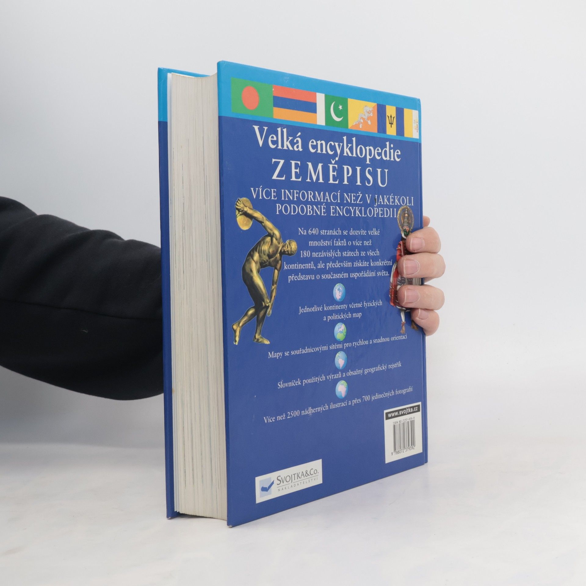 Na 640 stranách se čtenář dozví velké množství faktů o více než 180 nezávislých státech ze všechn kontinentů, ale především získá konkrétní představu o současném uspořádání světa. Jednotlivé kontinenty jsou včetně fyzických a politických map. Jsou zde mapy se souřadnicovými sítěmi pro rychlou a snadnou orientaci. Je zde slovníček použitých výrazů a obsažný geografický rejstřík. Kníha obsahuje více než 2 500 nádherných ilustrací a přes 700 jedinečných fotografií.
