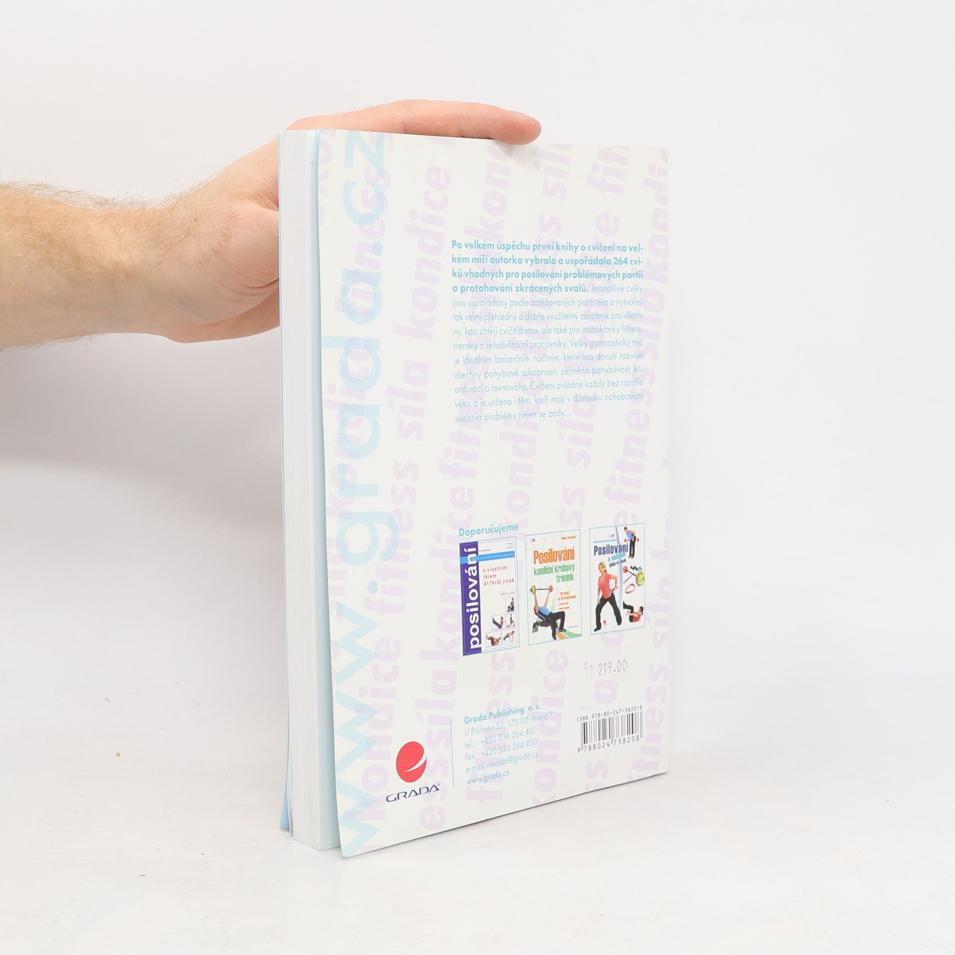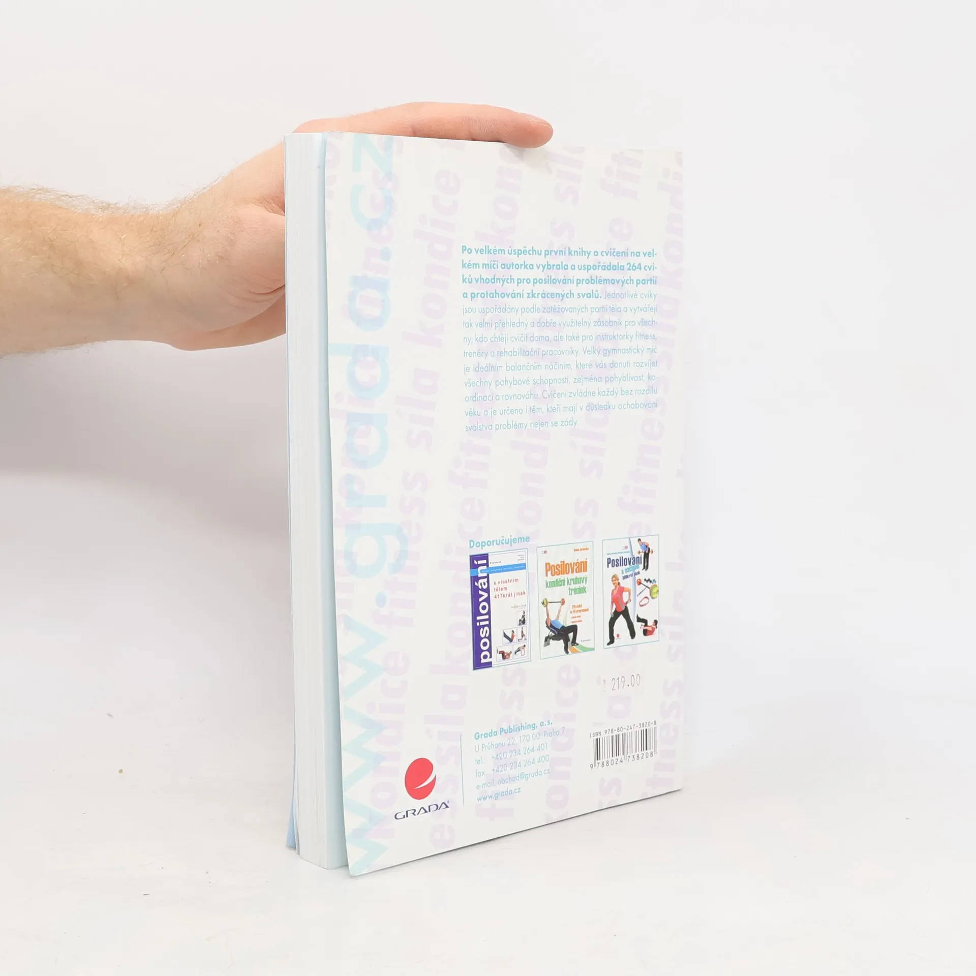 Po velkém úspěchu první knihy o cvičení na velkém míči autorka vybrala a uspořádala 264 cviků vhodných pro posilování problémových partií a protahování zkrácených svalů. Jednotlivé cviky jsou uspořádány podle zatěžovaných partií těla a vytvářejí tak velmi přehledný a dobře využitelný zásobník pro všechny, kdo chtějí cvičit doma, ale také pro instruktorky fitness, trenéry a rehabilitační pracovníky. Velký gymnastický míč je ideálním balančním náčiním, které vás donutí rozvíjet všechny pohybové schopnosti, zejména pohyblivost, koordinaci a rovnováhu. Cvičení zvládne každý bez rozdílu věku a je určeno i těm, kteří mají v důsledku ochabování svalstva problémy nejen se zády.