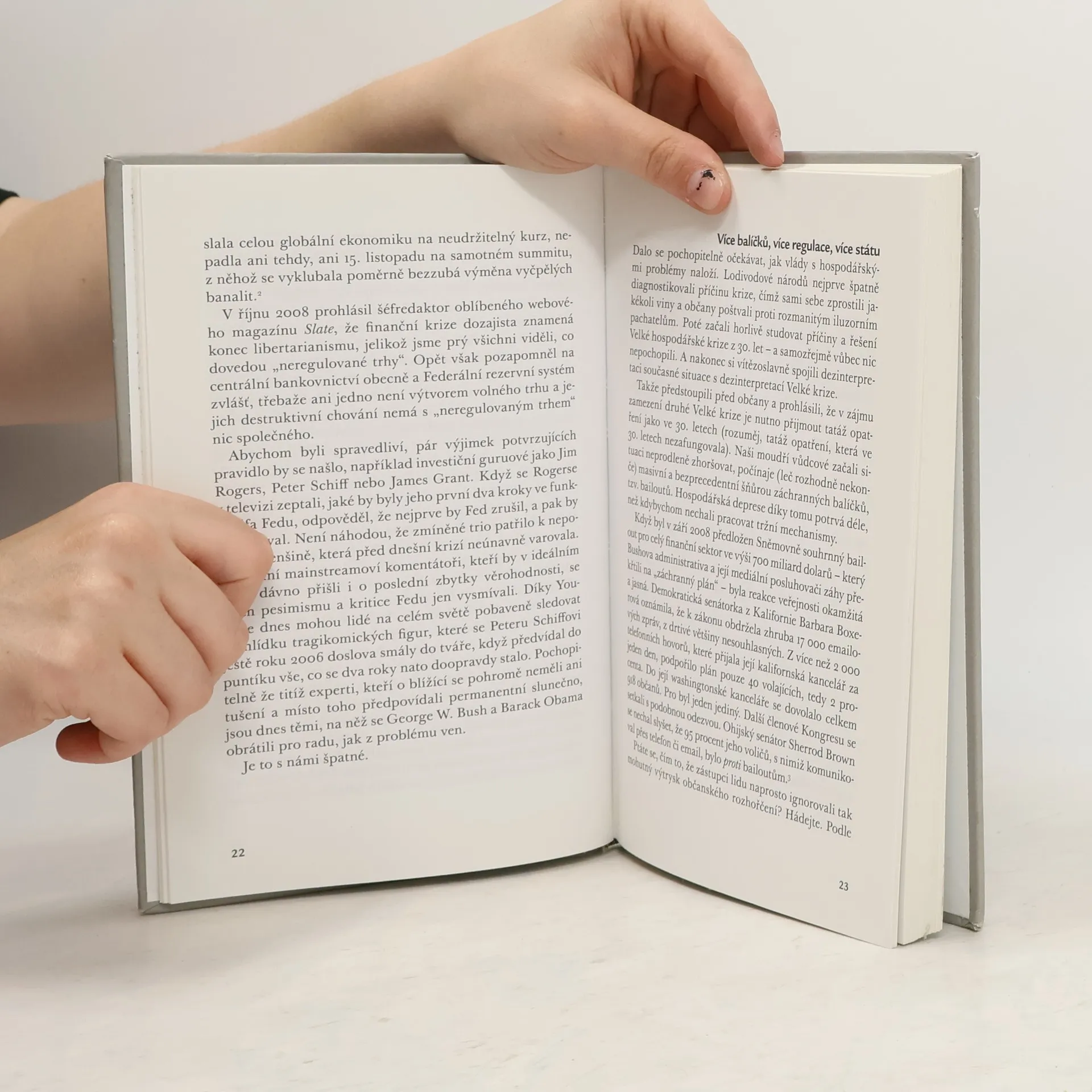Podtitul: Příčiny krize a nápravná opatření, která ji jen zhoršují Kniha o tom, co se vlastně světovému hospodářství v posledních letech přihodilo a co s tím máme dělat, již vyšlo mnoho (přinejmenším v zahraničí), a ještě více jich nepochybně vyjde. Jejich autoři však většinou podávají pouze mainstreamové vysvětlení, které lze velmi zhruba shrnout takto: bylo málo kontroly a mnoho svobody. Řešení pak už jen různými prostředky tento nedostatek napravují. Thomas E. Woods jr. k architektům řešení současné krize přistupuje nikoli s nábožnou úctou a bázní, jaké se jim dostává ve Washingtonu a v televizi, nýbrž nebojácně a zdravě kriticky, čehož drtivá většina údajně nezávislých komentátorů a akademiků není schopna. Kniha Krach provede laického čtenáře v několika krátkých kapitolách celou řadou témat, která v našich odborných i veřejných debatách dlouho chyběla. Autor mimo jiné vysvětluje základní principy fungování bankovnictví, podstatu inflace a především rakouskou teorii hospodářského cyklu. Předkládá přesvědčivý a racionální popis toho, jak jsme se dostali tam, kde dnes jsme. Pouze pokud správně ukážeme na skutečné příčiny současného debaklu, můžeme navrhnout řešení, která nás dovedou k nápravě, místo aby jen prodloužila naši agónii. Předmluvu napsal Josef Šíma Vydání první Celý originální název: Meltdown. A Free-Market Look at Why the Stock Market Collapsed, the Economy Tanked, and Government Bailouts