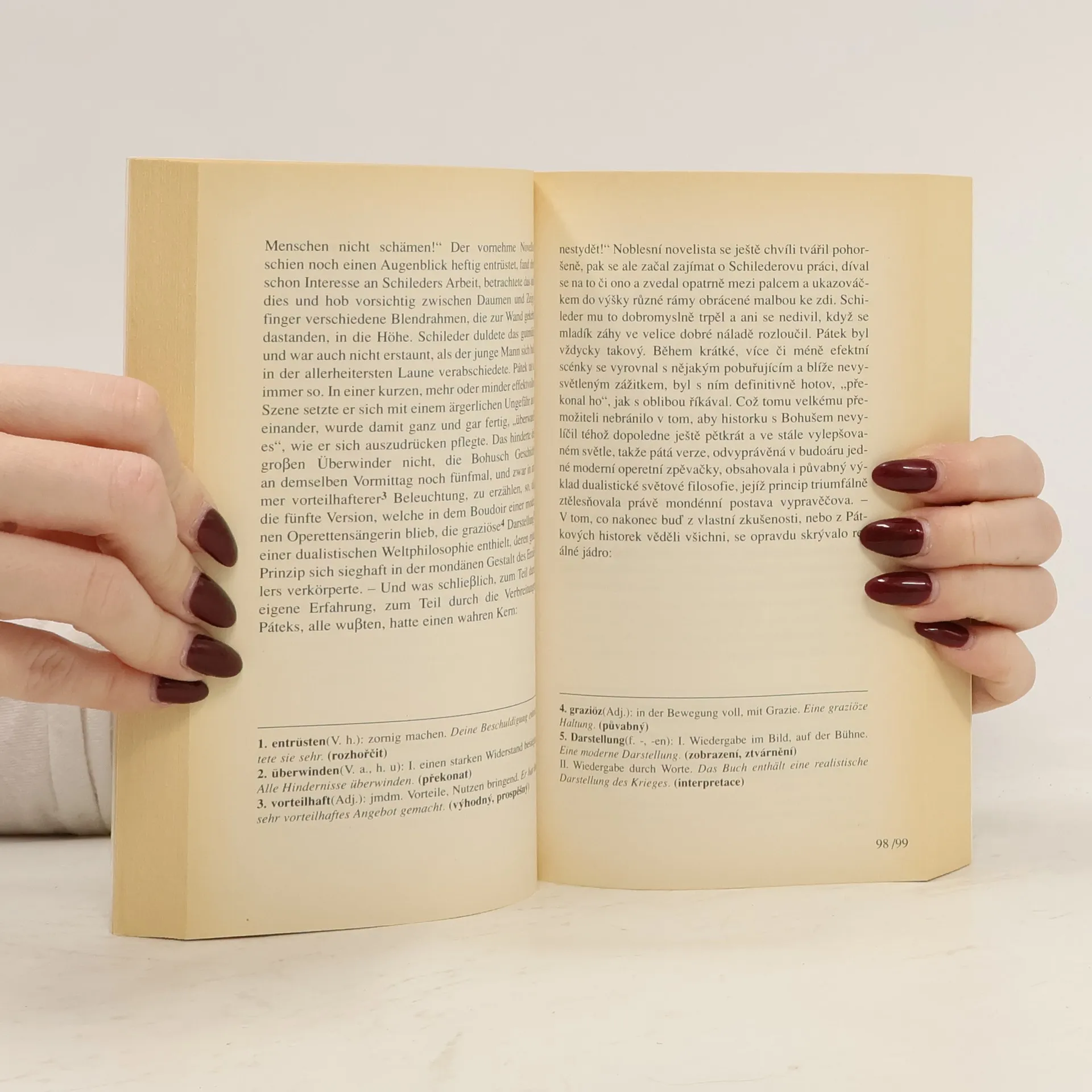 Dvě povídky z raného Rilkova tvůrčího období vyšly česky pouze jednou, v roce 1908 v Ottově nakladatelství. Rilke v nich popisuje prostředí, které důvěrně zná, totiž Prahu konce 19. století a problém, který se ho osobně dotýká: vztahy mezi Čechy a Němci. Důvody neshod a neporozumění vidí Rilke na straně radikálních Čechů a především studentů. Nový český překlad je součástí dvojjazyčného, česko-německého vydání, doplněného pro studijní účely gramatickým a lexikálním komentářem pod čarou. Pro středně pokročilé.