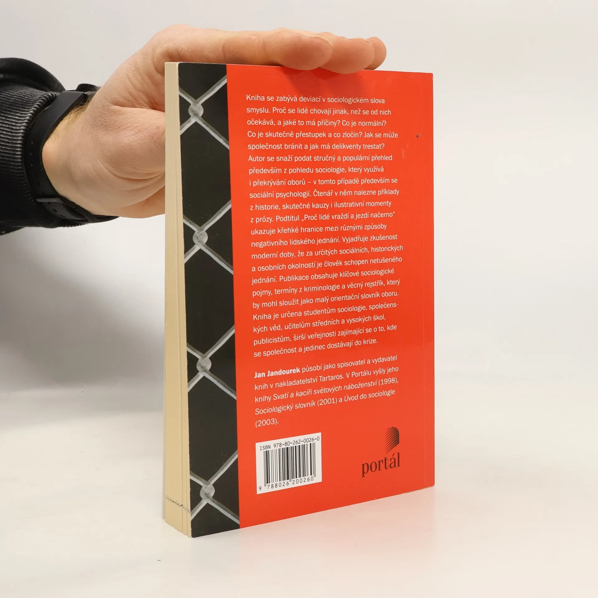 Proč lidé vraždí a jezdí načerno Kniha se zabývá deviací v sociologickém slova smyslu. Proč se lidé chovají jinak, než se od nich očekává, a jaké to má příčiny? Co je normální? Co je skutečně přestupek a co zločin? Jak se může společnost bránit a jak má delikventy trestat? Autor se snaží podat stručný a populární přehled především sociologický a využívající překrývání oborů – v tomto případě samozřejmě především se sociální psychologií. Čtenář v knize nalezne příklady z historie, skutečné kauzy i ilustrativní momenty z prózy. Podtitul „Proč lidé vraždí a jezdí načerno“ ukazuje křehké hranice mezi různými způsoby negativního lidského jednání. Vyjadřuje zkušenost moderní doby, že za určitých sociálních, historických a osobních okolností je člověk schopen netušeného jednání. Publikace obsahuje základní klíčové sociologické pojmy a pojmy z kriminologie a věcný rejstřík by mohl sloužit jako malý orientační slovník oboru. Cílovou skupinou jsou studenti sociologie, společenských věd, učitelé středních a vysokých škol, publicisté, širší veřejnost zajímající se o to, kde se společnost a jedinec dostávají do krize.