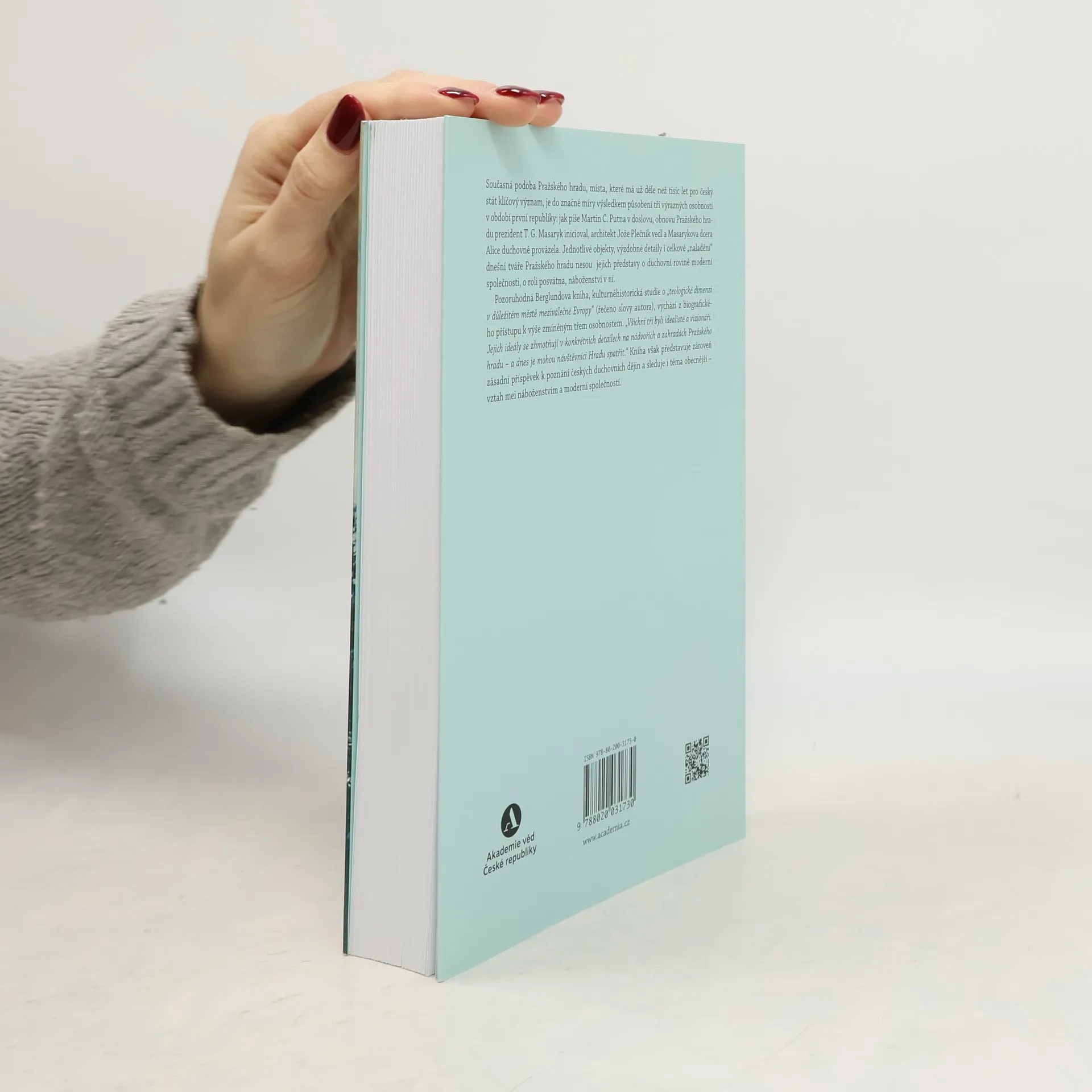 Kniha představuje zásadní příspěvek k poznání českých duchovních dějin. Sleduje paralelně osudy a náboženské názory tří osobností, které svým myšlením a jednáním české duchovní dějiny podstatně ovlivnily: Tomáše Garrigue Masaryka, jeho dcery Alice Masarykové a slovinského architekta Jože Plečnika. Jejich působení se promítlo do současné podoby Pražského hradu – místa, které má už déle než tisíciletí po český stát klíčový význam. Jakou roli hrála náboženská zkušenost a touha po posvátnu v jejich životech? A jak se jejich vztah k náboženství promítl do československých dějin? Právě na tyto otázky hledá odpověď tato kniha.