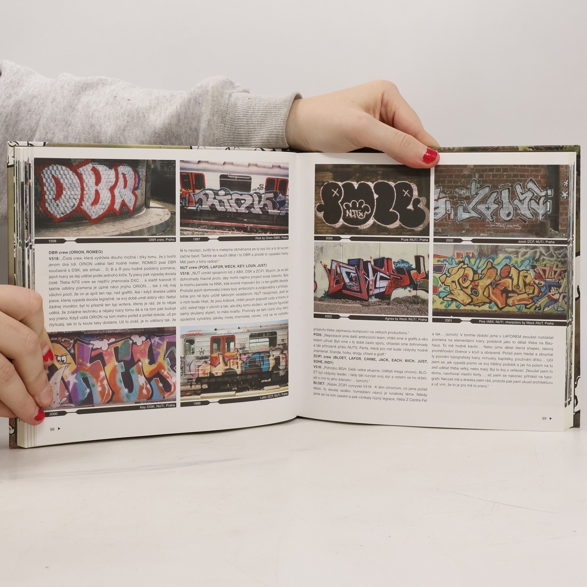 Kniha In Graffiti We Trust je vůbec prvním pokusem o systematické shrnutí vývoje, jímž pražská graffiti scéna (s přihlédnutím k městům Ostravě a Brnu) prošla od roku 1989 po současnost. V pěti chronologicky řazených kapitolách se autorka zabývá především názorovými a stylovými proměnami jimiž jednotlivé generace prošly, dále jejich vzájemnými vztahy a celkovou strukturou komunity. V druhé části představuje 12 writerů, kteří se ve své tvorbě základnímu konceptu psaní jména časem vzdálili, nicméně graffiti stále považují za silný inspirační zdroj nejen v tvorbě, ale i v přístupu k životu, společnosti, mezilidským vztahům atd. Díky úzké spolupráci s writery všech pěti generací se podařilo doplnit text o fotografie, které podstatu graffiti - tedy písmo a jeho tvar - vystihují ze všeho nejlépe.... celý text