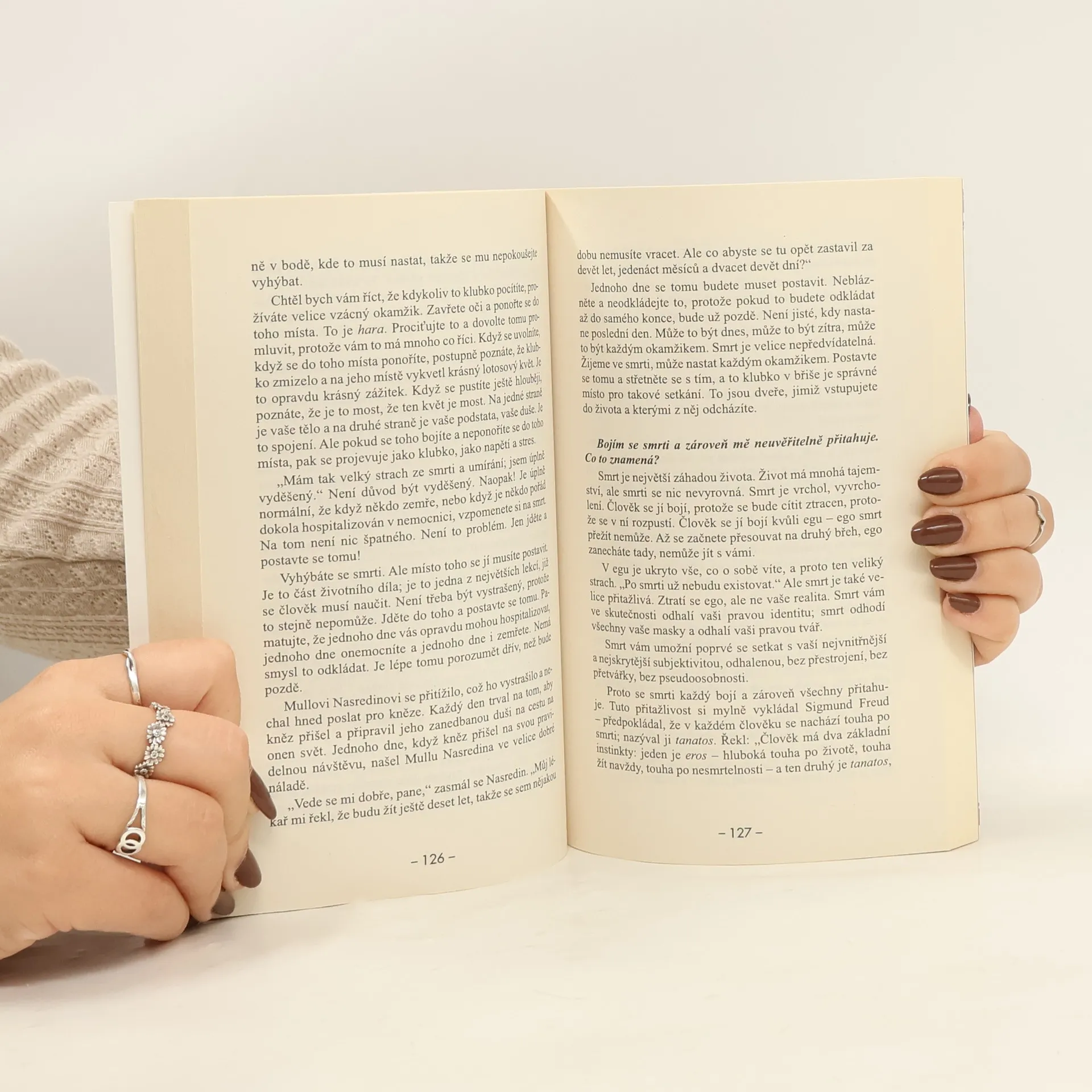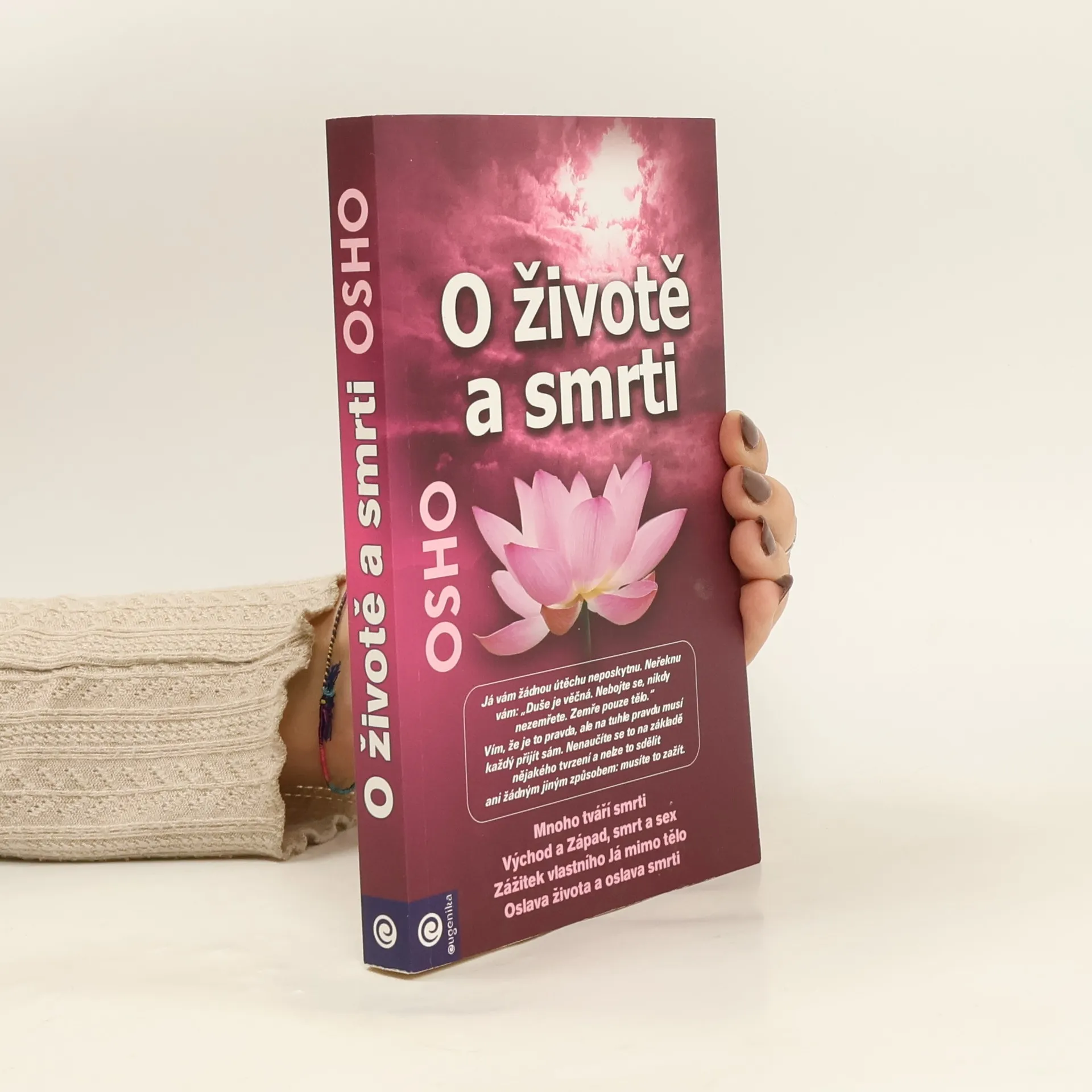 Oblíbený guru mluví v této své knize bez zábran o smrti. Toto téma není možné tabuizovat, protože pokud chcete opravdu žít, musíte se vyrovnat i s myšlenkou na smrt.Najdete zde odpovědi na různé situace, a pokud je pro vás toto téma zrovna aktuální, Osho vám poskytne hlu-bokou, nádhernou inspiraci, a hlavně se ve vás probudí touha po plném životě."Já vám žádnou útěchu neposkytnu. Neřeknu vám: „Duše je věčná. Nebojte se, nikdy nezemřete. Zemře pouze tělo.“ Vím, že je to pravda, ale na tuhle pravdu musí každý přijít sám. Nenaučíte se to na základě ně-jakého tvrzení a nelze to sdělit ani žádným jiným způ-sobem: musíte to zažít".