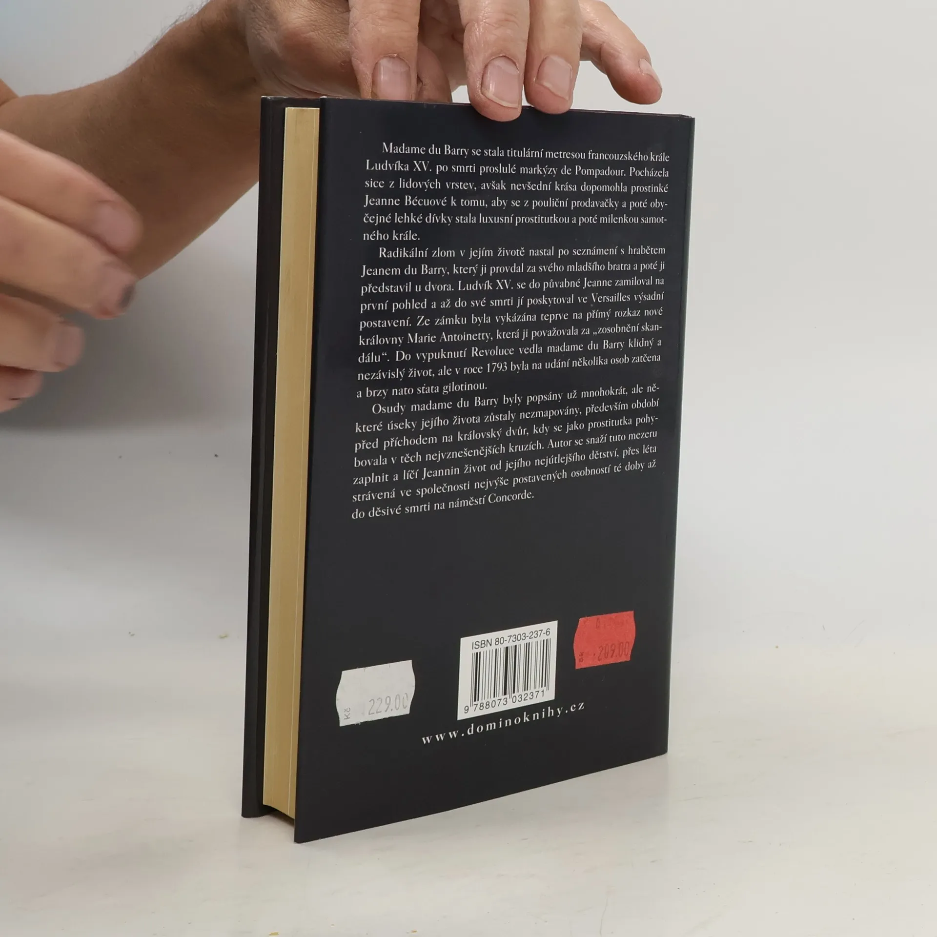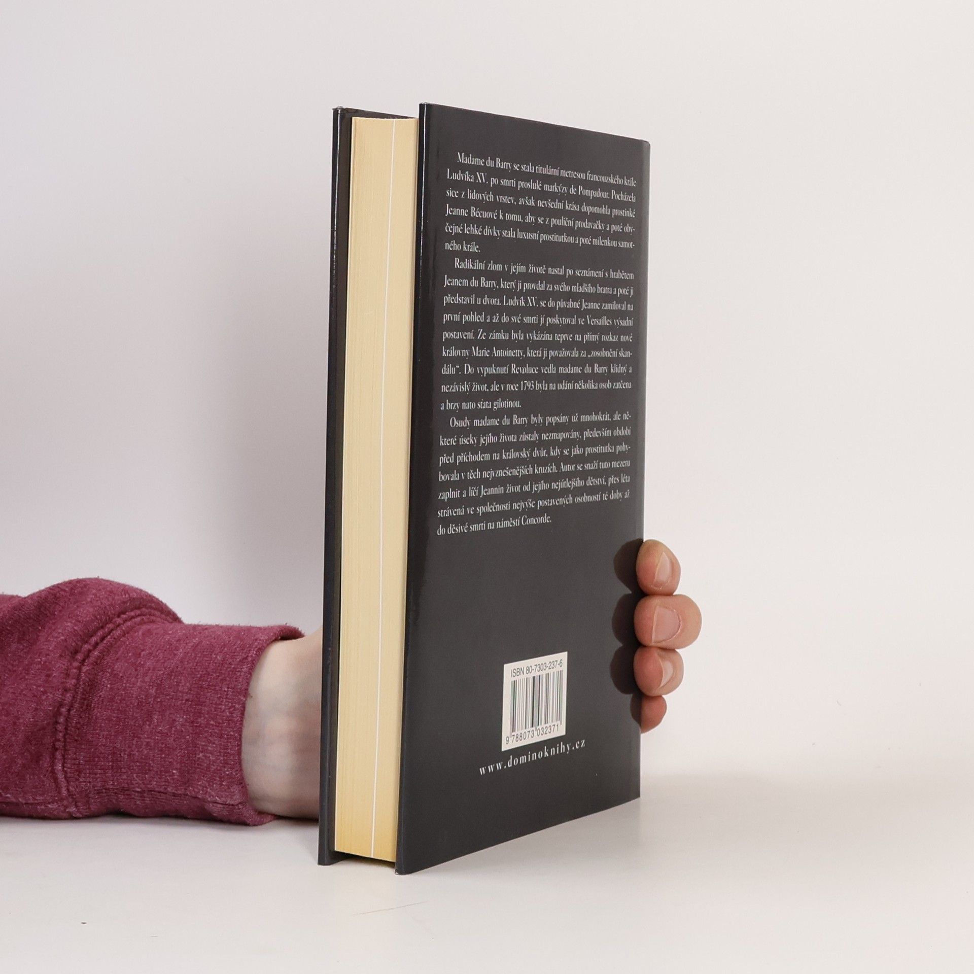 Madame du Barry se stala titulární metresou francouzského krále Ludvíka XV. po smrti proslulé markýzy de Pompadour. Pocházela sice z lidových vrstev, avšak nevšední krása dopomohla prostinké Jeanne Bécuové k tomu, aby se z pouliční prodavačky a poté obyčejné lehké dívky stala luxusní prostitutkou a poté milenkou samotného krále. Radikální zlom v jejím životě nastal po seznámení s hrabětem Jeanem du Barry, který ji provdal za svého mladšího bratra a poté ji představil u dvora. Ludvík XV. se do půvabné Jeanne zamiloval na první pohled a až do své smrti jí poskytoval ve Versailles výsadní postavení. Ze zámku byla vykázána teprve na přímý rozkaz nové královny Marie Antoinetty, která ji považovala za "zosobnění skandálu". Do vypuknutí Revoluce vedla madame du Barry klidný a nezávislý život, ale v roce 1793 byla po udání několika osob zatčena a brzy nato sťata gilotinou. Osudy madame du Barry byly popsány už mnohokrát, ale některé úseky jejího života zůstaly nezmapovány, především období před příchodem na královský dvůr, kdy se jako prostitutka pohybovala v těch nejvznešenějších kruzích. Autor se snaží tuto mezeru zaplnit a líčí Jeannin život od jejího nejútlejšího dětství, přes léta strávená ve společnosti nejvýše postavených osobností té doby až do děsivé smrti na náměstí Concorde.