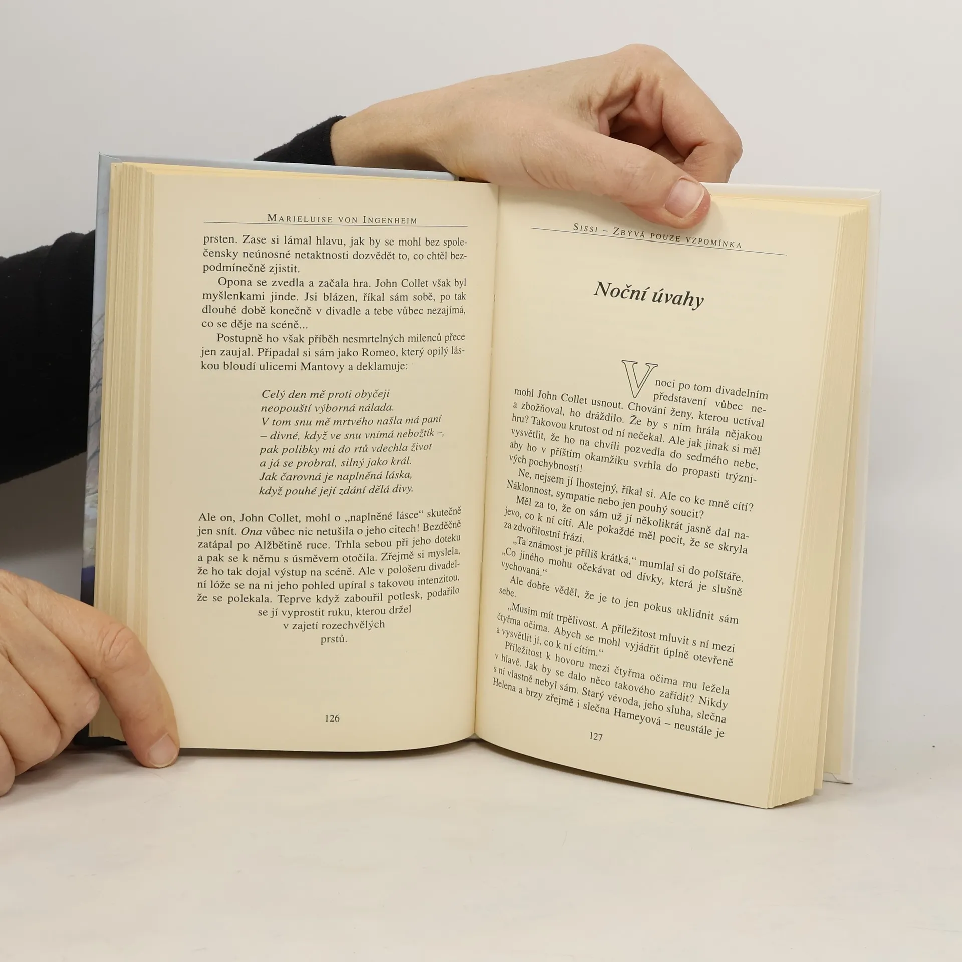 Jedenáctý díl životopisného cyklu se odehrává od prosince 1897 do léta 1898. Císařovna se ve vzpomínkách vrací do roku 1863, kdy se v lázních Bad Kissingenu pod cizím jménem seznámila se zajímavým ochrnutým Angličanem, který na určitý čas ovlivnil její život. Pravidelně se s tímto inteligentním a citlivým mužem scházela na lázeňské promenádě a teprve když se do ní bláznivě zamiloval a chtěl jí požádat o ruku, musela mu prozradit svou totožnost a ukončit tento platonický vztah. Vzpomínky na minulá dobrodružství Alžbětu odvracejí od tíživých myšlenek na současnost a pomáhají zaplašit vědomí, že se její osud pomalu naplňuje.