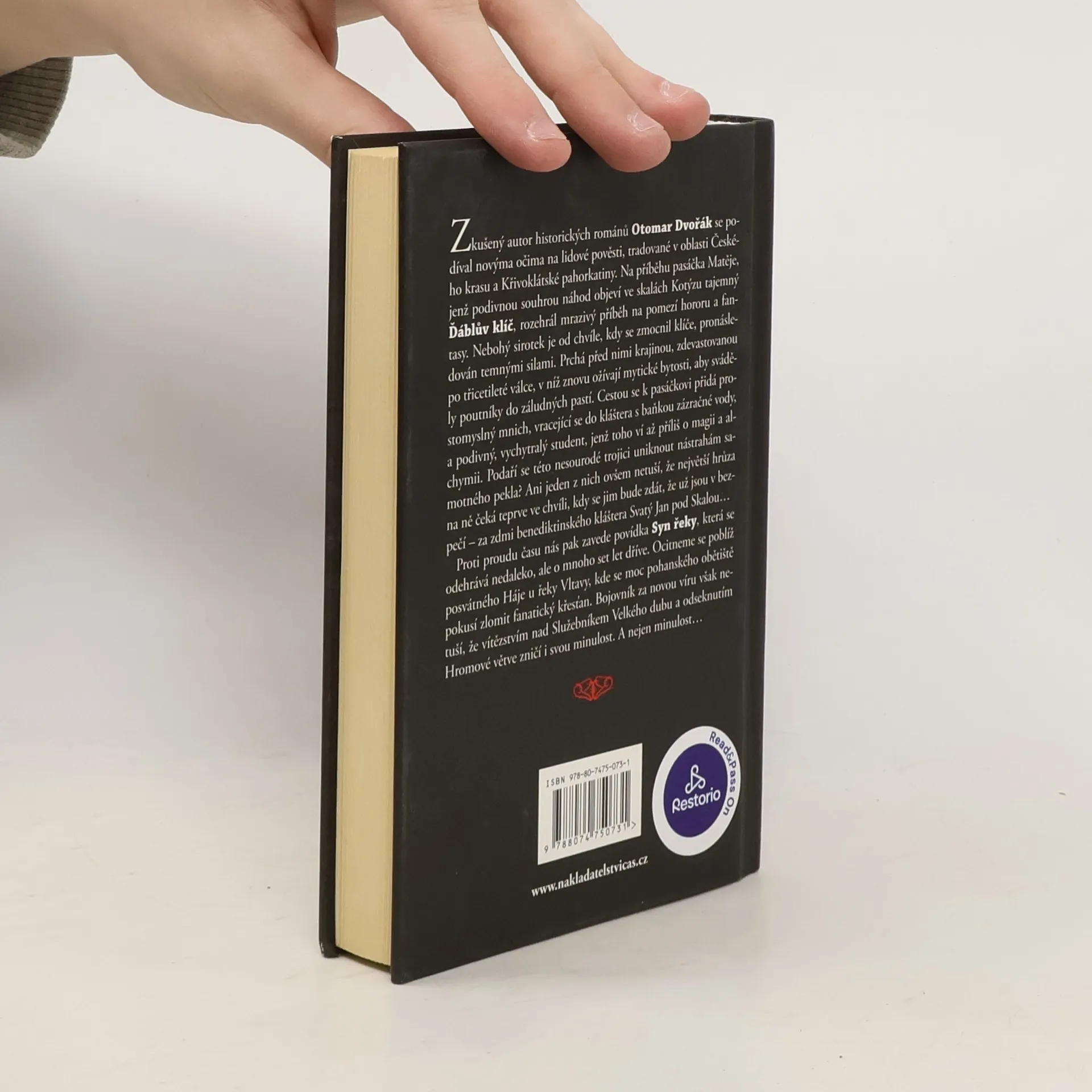 Zkušený autor historických románů Otomar Dvořák se podíval novýma očima na lidové pověsti, tradované v oblasti Českého krasu a Křivoklátské pahorkatiny. Na příběhu pasáčka Matěje, jenž podivnou souhrou náhod objeví ve skalách Kotýzu tajemný Ďáblův klíč, rozehrál mrazivý příběh na pomezí hororu a fantasy. Nebohý sirotek je od chvíle, kdy se zmocnil klíče, pronásledován temnými silami. Prchá před nimi krajinou, zdevastovanou po třicetileté válce, v níž znovu ožívají mytické bytosti, aby sváděly poutníky do záludných pastí. Cestou se k pasáčkovi přidá prostomyslný mnich, vracející se do kláštera s baňkou zázračné vody, a podivný, vychytralý student, jenž toho ví až příliš o magii a alchymii. Podaří se této nesourodé trojici uniknout nástrahám samotného pekla? Ani jeden z nich ovšem netuší, že největší hrůza na ně čeká teprve ve chvíli, kdy se jim bude zdát, že už jsou v bezpečí – za zdmi benediktinského kláštera Svatý Jan pod Skalou… Proti proudu času nás pak zavede povídka Syn řeky, která se odehrává nedaleko, ale o mnoho set let dříve. Ocitneme se poblíž posvátného Háje u řeky Vltavy, kde se moc pohanského obětiště pokusí zlomit fanatický křesťan. Bojovník za novou víru však netuší, že vítězstvím nad Služebníkem Velkého dubu a odseknutím Hromové větve zničí i svou minulost. A nejen minulost…
