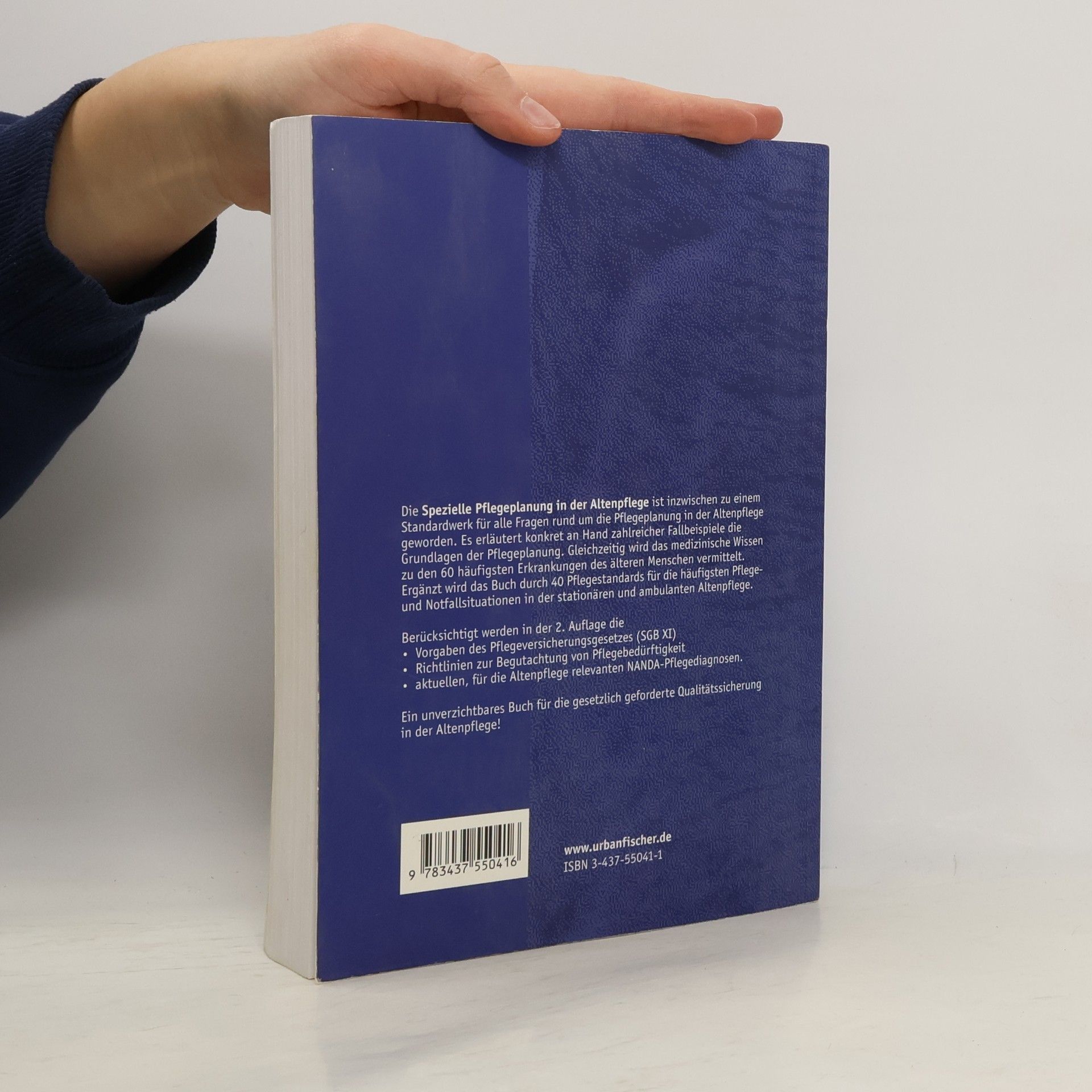 Leistungs- und Qualitätsnachweise, Expertenstandards, das neue Altenpflegegesetz: Das Standardwerk zur Pflegeplanung berücksichtigt alle aktuellen Entwicklungen in der Altenpflege. Ihr Plus: neue Beispiele für zeitlich gegliederte Pflegepläne erleichtern die Gestaltung von individuellen Leistungsnachweisen das umfassende Fachwissen rund um die Expertenstandards wurde in die bestehenden Pflegepläne integriert und kann für den Unterricht den neuen Lernfeldern zugeordnet werden Pflegeplanungen für die 60 häufigsten Erkrankungen älterer Menschen 58 aktualisuerte Pflegestandards für die häufigsten Pflege- und Notfallsituationen „Spezielle Pflegeplanung in der Altenpflege“ - das perfekte Buch für die Ausbildung und die tägliche Praxis.