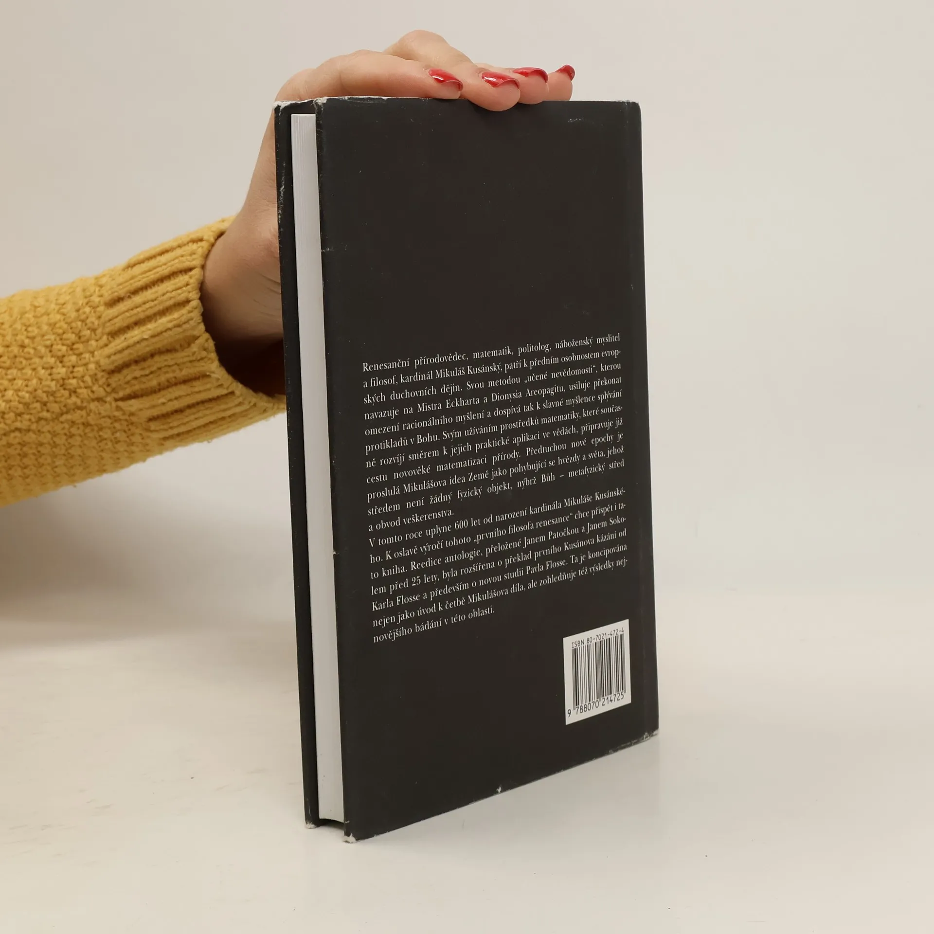 Druhé vydání po 25 letech je doprovázeno obsáhlou studií Pavla Flosse. Renesanční přírodovědec, matematik, politolog, náboženský myslitel a filosof, kardinál Mikuláš Kusánský (1401-1464), patří k předním postavám evropských dějin. „Vědoucí nevědění“, jednota protikladů, nekonečný svět jako kontrakce Boha, dialektické předvedení kosmu – to jsou jen některé z myšlenek tohoto učence, obdivovatele Mistra Eckharta a Dionýsia Areopagrita. Po mnoha letech má nyní český čtenář znovu možnost nahlédnout do pozoruhodného myšlenkového světa tohoto „otce“ nového pojetí universa, jenž přímo či nepřímo hluboce ovlivnil celou řadu svých následovníků – mj. Bruna, Leibnize, Komenského či německé romantiky.