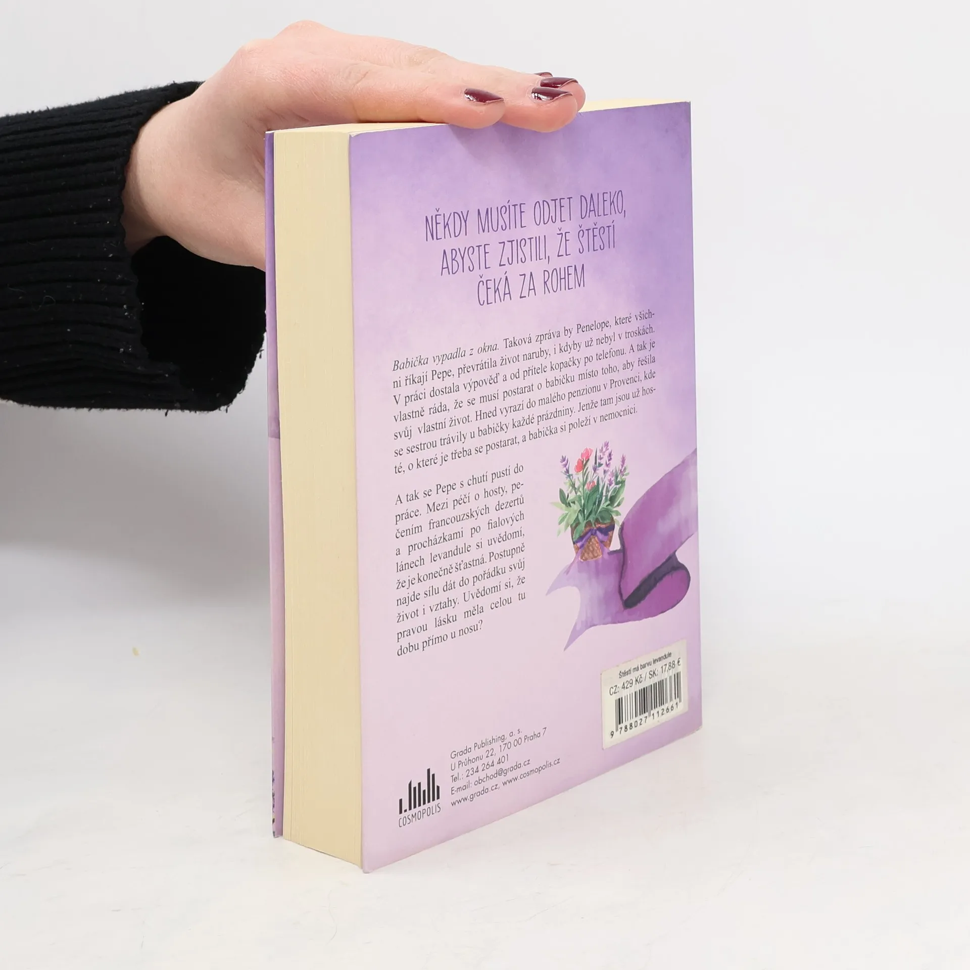 Babička vypadla z okna! Taková zpráva by Penelope, které všichni říkají Pepe, převrátila život naruby, i kdyby už nebyl v troskách. V práci dostala výpověď a od přítele kopačky po telefonu. A tak je vlastně ráda, že se musí postarat o babičku místo toho, aby řešila svůj vlastní život. Hned vyrazí do malého penzionu v Provenci, kde se sestrou trávily u babičky každé prázdniny. Jenže tam jsou už hosté, o které je třeba se postarat, a babička si poleží v nemocnici. A tak se Pepe s chutí pustí do práce. Mezi péčí o hosty, pečením francouzských dezertů a procházkami po fialových lánech levandule si uvědomí, že je konečně šťastná. Postupně najde sílu dát do pořádku svůj život i vztahy. Uvědomí si, že pravou lásku měla celou tu dobu přímo u nosu?