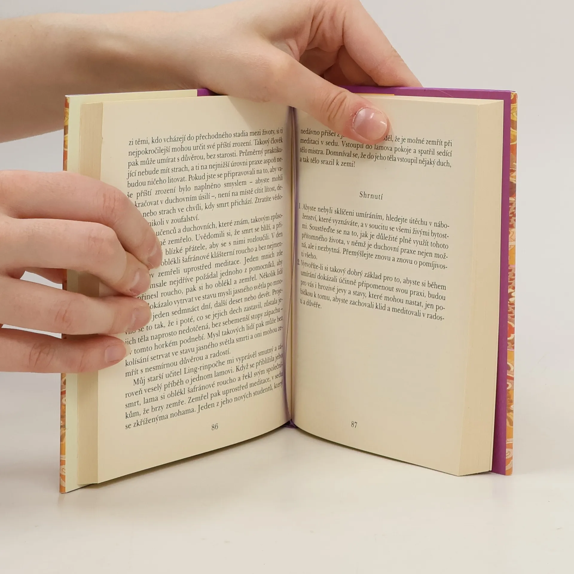 Kniha je Dalajlámovým komentářem o duchovní přípravě na smrt a je inspirována klasickým textem tibetského buddhismu – básní ze 17. století, jejímž autorem je první pančhenlama. Tuto značně ezoterní báseň Jeho Svatost 14. Dalajlama komentuje a rozvádí do konkrétních rad pro každodenní život. Vysvětluje, jak a proč meditovat o pomíjivosti, jak vytvořit vhodné prostředí pro umírající, jak praktikovat během umírání. Zvlášť podrobně vysvětluje jednotlivá stadia umírání i způsob, jak si vštěpovat jejich posloupnost, aby naše umírání probíhalo beze strachu a aby hlubší stavy mysli, k nimž během umírání dochází, mohly být využity pro duchovní praxi všech úrovní. Celý výklad prokládá příběhy o vysoce duchovně vyvinutých mniších a mniškách, s nimiž se sám setkal, a seznamuje čtenáře také s událostmi kolem volby posledního pančhenlamy tak, jak je sám prožíval.