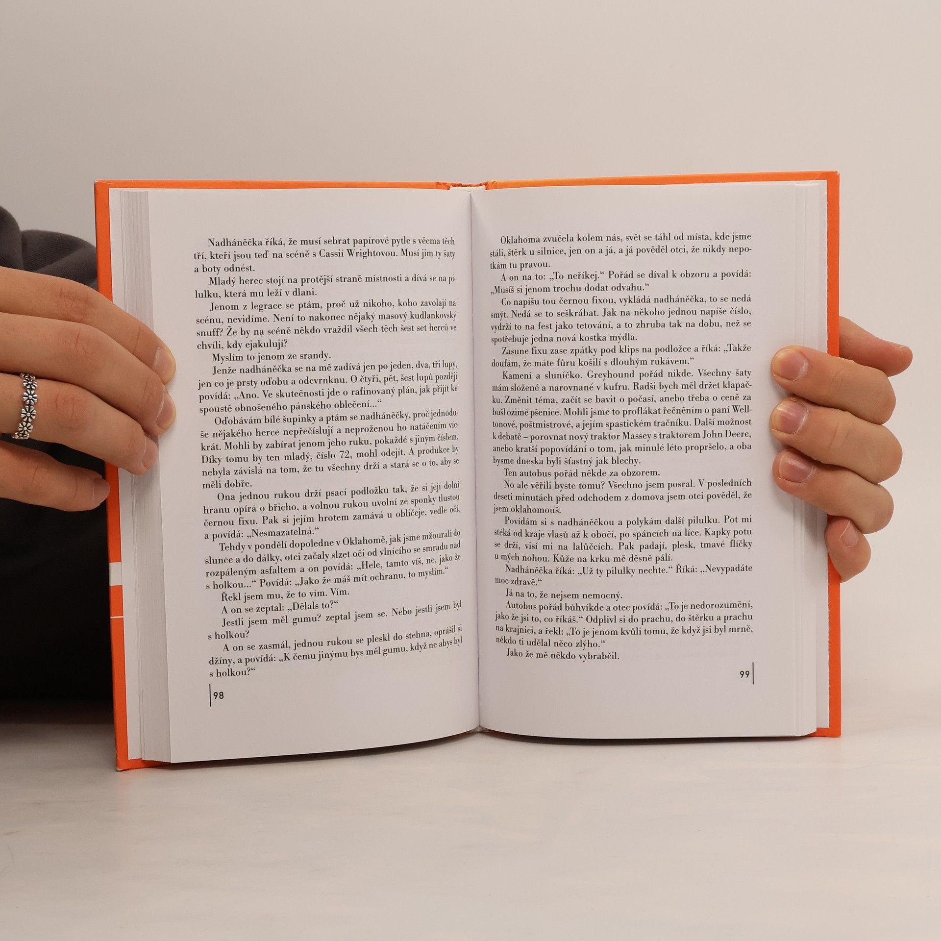 Román pro tři pornoherce a jednu asistentku. Termínem "snuff" se označují ilegální pornofilmy, v nichž je zachycena vražda či zabití. Nebo předstírání téhož, ale to už není ono. Jde o žádané zboží na trhu. V Palahniukově románu jde o smrt netradiční a přízračnou - jinak to ani u něj být nemůže: slavná pornoherečka Cassie Wrightová chce překonat stávající rekord v souložení s muži, který vytvořila Annabel Chong. Ta za deset hodin absolvovala 251 milostných aktů se zhruba sedmdesáti muži. Cassie nechce podvádět, a tak hodlá obsloužit rovných 600 mužů. A smrt? Podle Palahniuka nedokáže lidské tělo zvládnout takovou zátěž, herečka předpokládá, že při tom zemře na embolii. Cassie chce utvořit rekord na věčné časy: doufá, že když při něm zemře, oficiální místa honbu za dalšími rekordy zakáží a její výkon zůstane navždy nejlepší. Každý z oněch 600 mužů má svůj specifický důvod. Číslo 600 je bývalý slavný pornoherec Branch Bacardi, který s Cassie, které je skoro čtyřicet, natočil spoustu scén. Číslo 137 by si Cassie chtěl vzít a pořád se dopuje viagrou. A číslo 72 je její odložený syn, jenž touží po setkání s matkou. Všichni tři čekají v místnosti k prasknutí nacpané dalšími muži, kteří se udržují neustále připraveni k akci, v čemž je podporují i slavné filmové kousky z profesionální minulosti hlavní aktérky. Show může začít.