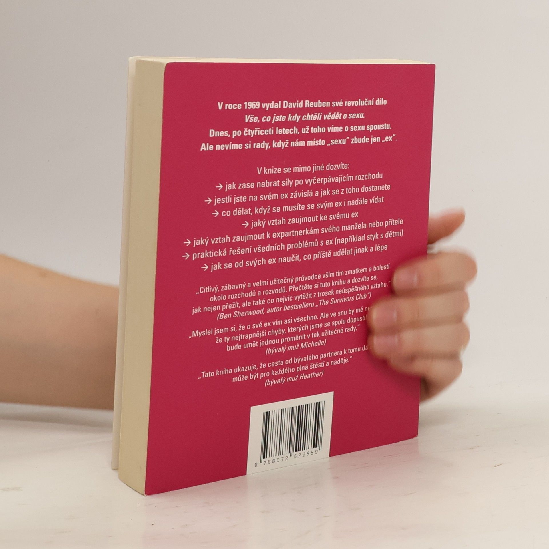 V roce 1969 vydal David Reuben své revoluční dílo Vše, co jste kdy chtěli vědět o sexu. Dnes, po čtyřiceti letech, už toho víme o sexu spoustu. Ale nevíme si rady, když nám místo "sexu" zbude jen "ex".