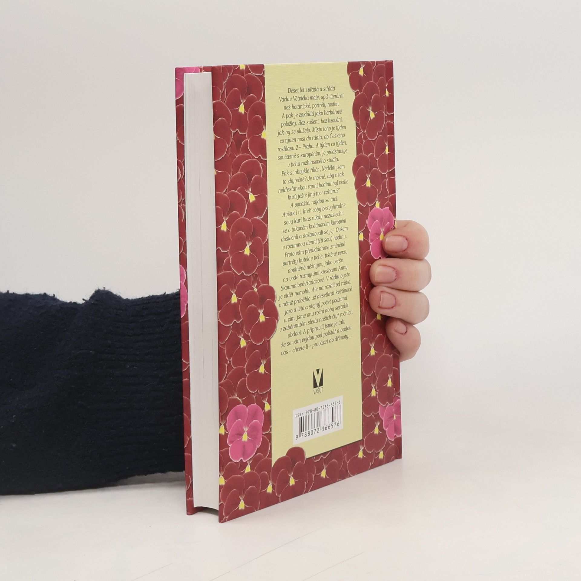 Deset let spřádá a střádá Václav Větvička malé, spíš literární než botanické, portréty rostlin. A pak je zakládá jako herbářové položky. Bez sušení, bez lisování, jak by se slušelo. Místo toho je týden co týden nosí do rádia, do Českého rozhlasu 2 - Praha. A týden co týden, současně s kuropěním, je představuje v tichu rozhlasového studia. Pak si obvykle říká: "Nedělal jsem to zbytečně? Je možné, aby v tak nekřesťanskou ranní hodinu byl vedle kurů ještě jiný tvor vzhůru?" A považte, najdou se tací. Avšak i ti, kteří coby bezvýhradné sovy kuří hlas nikdy nezaslechli, se o takovém květinovém kuropění doslechli a dožadovali se jej. Ovšem v rozumnou denní (čti soví) hodinu. Proto vám předkládáme zmíněné portréty kytek v tiché, tištěné verzi, doplněné něžnými, jako verše na vodě rozmytými kresbami Anny Skoumalové-Hadačové. V rádiu byste je vidět nemohli. Ale na rozdíl od rádia, v němž proběhlo už desetkrát květinové jaro a léto a stejný počet podzimů a zim, jsme ony roční doby seřadili v zaběhnutém sledu našich čtyř ročních období. A připravili jsme je tak, že se vám vejdou pod polštář a budou vás - chcete-li - provázet do dřímoty.