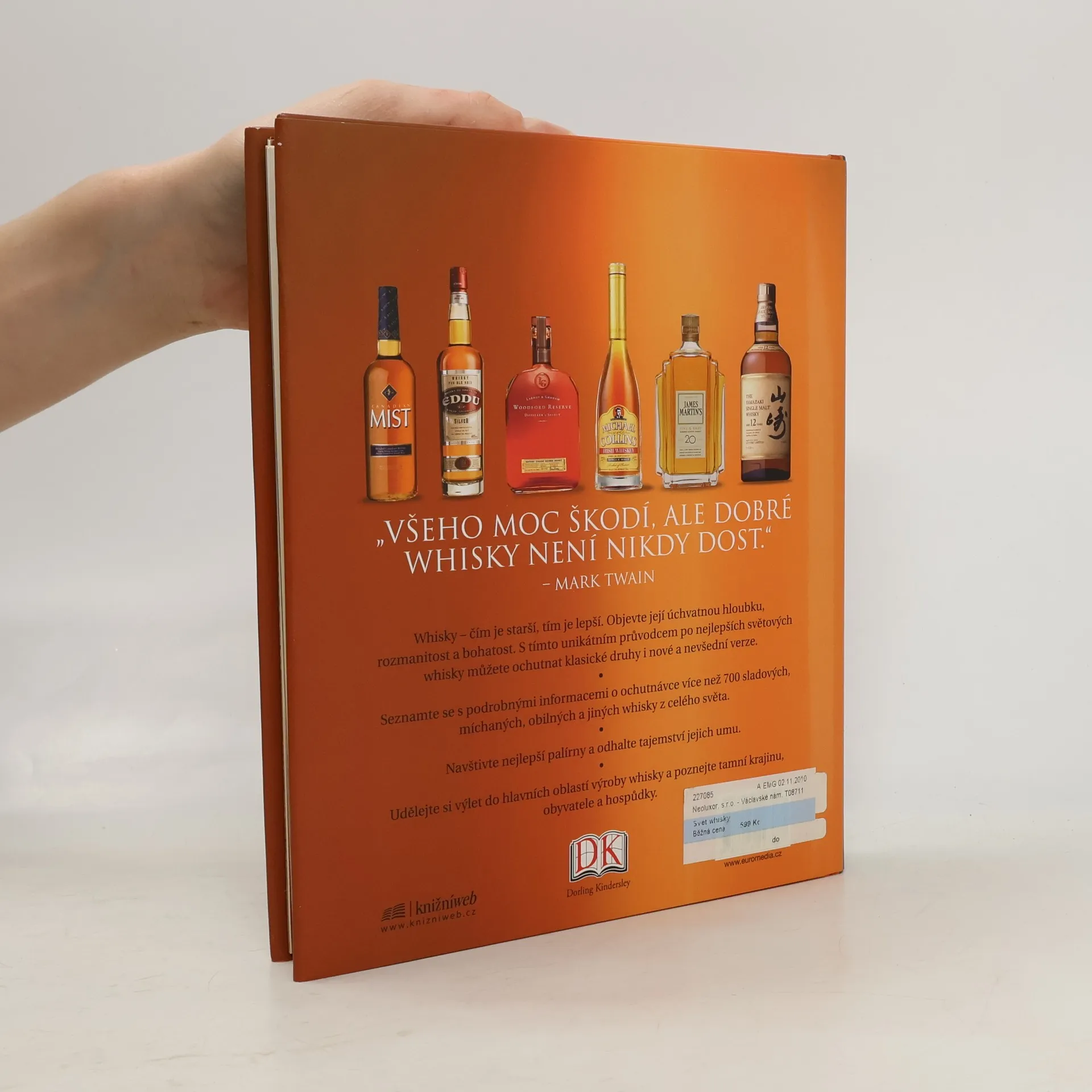 Kniha, v níž milovníci whisky najdou vše, co hledají: Whisky, které stojí za to – bezkonkurenční postřehy z ochutnávek a fotografie všech popisovaných whisky vám pomohou najít a vychutnat nejlepší sladové, míchané, obilné a další whisky z celého světa. Historie palíren, barva, stáří, síla a charakter jednotlivých druhů whisky – najdete tu vše. Whisky tour – ověřená doporučení k návštěvám oblíbených turistických destinací spojených s whisky, prohlídky palíren a výběr restaurací, ovšem i praktické informace: jak a kam jet a co nevynechat. Tajemství palíren – přímo v knize můžete navštívit nejdůležitější světové palírny, prozkoumat kořeny, tajemství a kouzla palírnického umění a zjistit, jak se vyrábějí uznávané whisky jemných i komplexních chutí. Exkluzivní, a přitom nanejvýš praktický společník na objevitelské cestě za nejlepšími představiteli tohoto jedinečného, velkolepého nápoje.